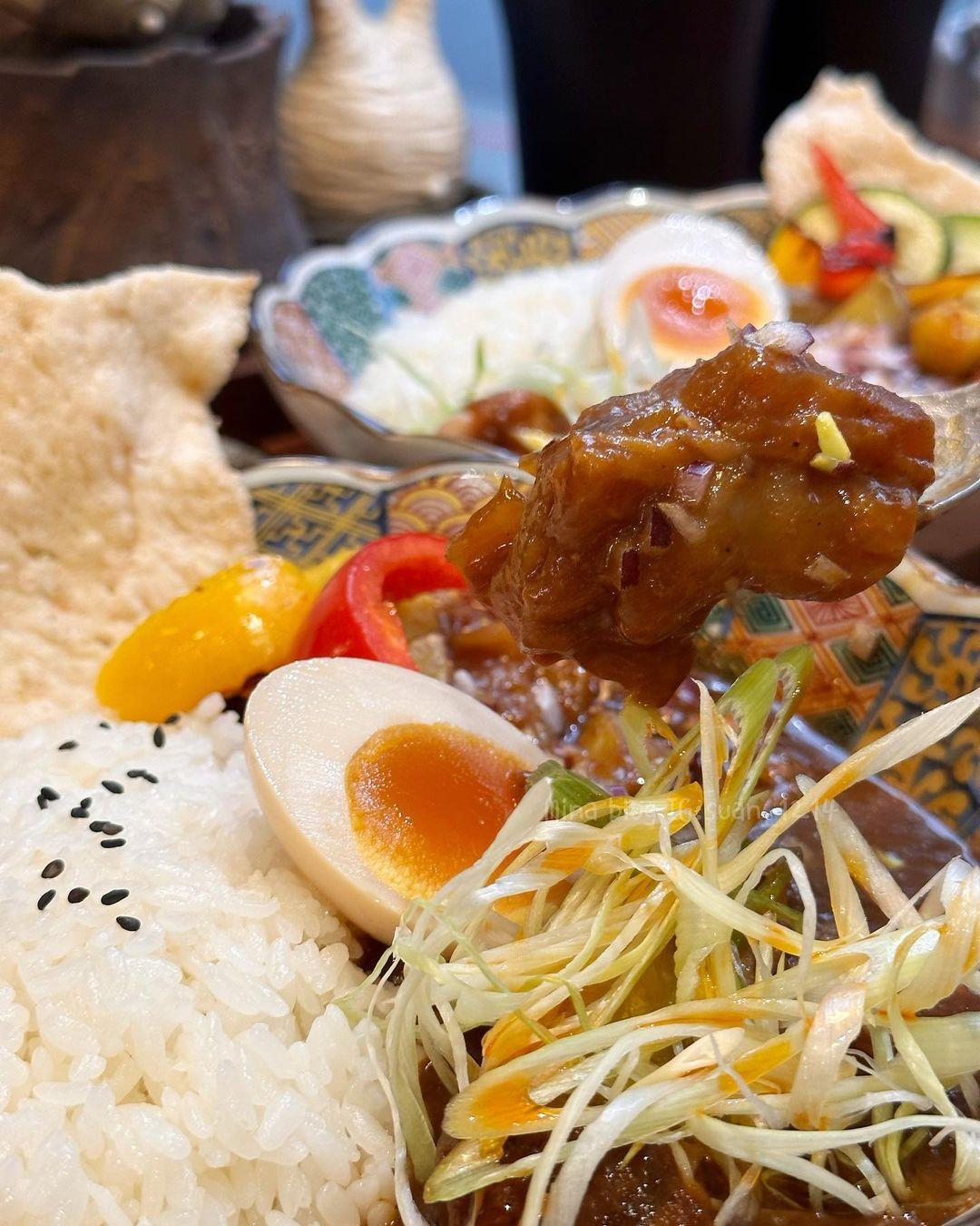「艋舺咖喱」在2021年才開業,主打手作熟成咖喱輔以秘製香料,比一般日式咖喱味覺層次更豐富。咖喱分成燒肉、牛肉和雞肉三種,這店的咖喱不單賣相吸引,配料還很豐富,有洋蔥、甜椒、地瓜等等,更會附上一塊大蝦餅,讓食客沾著咖哩醬吃。