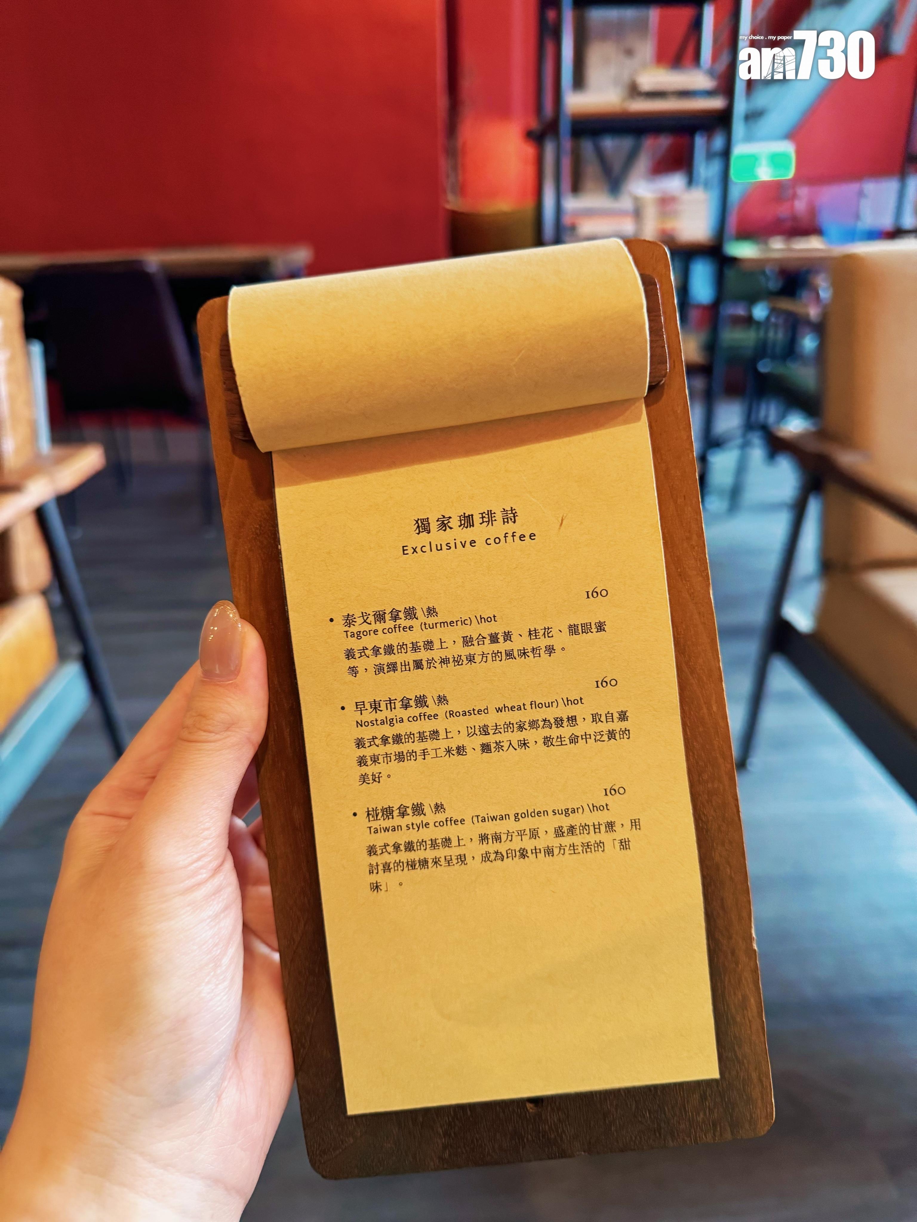 國王蝴蝶咖啡的咖啡作品名稱相當詩意,以印度哲學詩人為名的「泰戈爾拿鐵」,在意式拿鐵中加入薑黃、桂花與龍眼蜜,入口先是薑黃與龍眼蜜交織的溫暖甜香,口感潤厚,桂花幽香隨之而來,於秋冬呷一口特別療癒。記者最喜歡店內的「微苦感烤布丁」,長方形的布丁口感扎實,入口濃濃蛋香,淋上微微甘苦的焦糖醬,甜度恰到好處,完美詮釋近年流行的「大人味布丁」的精髓。店內更有各種非咖啡特調、自家出品如冰火菠蘿油等各種輕食,搭配手沖或創意特調,讓到訪客人可以消磨一整個下午。