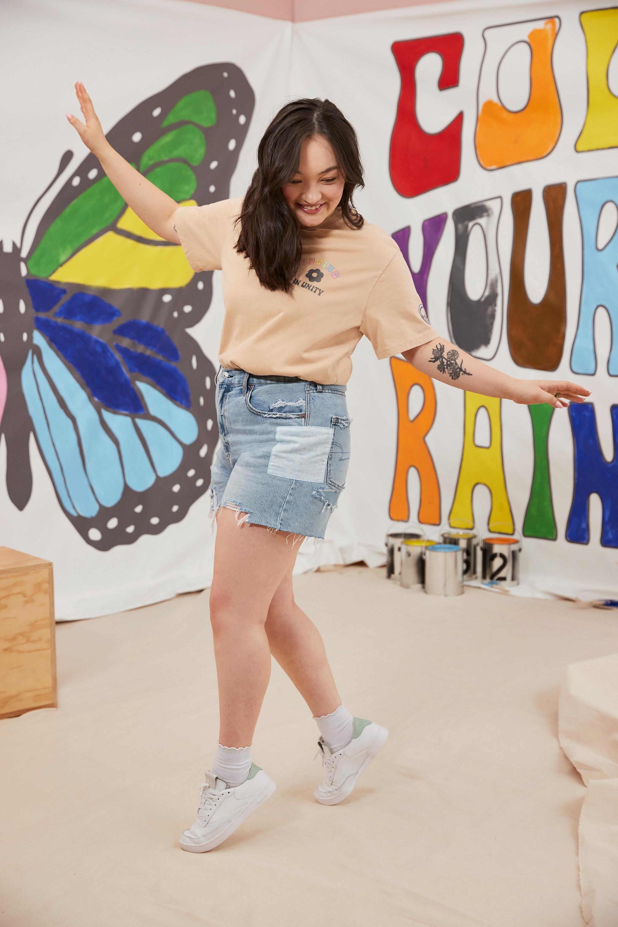 American Eagle 今年以「Color Your Own Rainbow」為主題,帶來4款印花短袖T恤,更加入「Be You」、「You Are Not Alone」等字句作亮點,期許這個世界能充滿愛、包容與尊重。今季大熱的男友風牛仔褲、喇叭褲款式紛紛加入彩虹系列以襯搭不同造型,辨識度極高的彩虹色調與品牌經典漸變元素互相結合,由色彩訴說設計背後的訊息外,更為夏日造型增添趣味和活力。