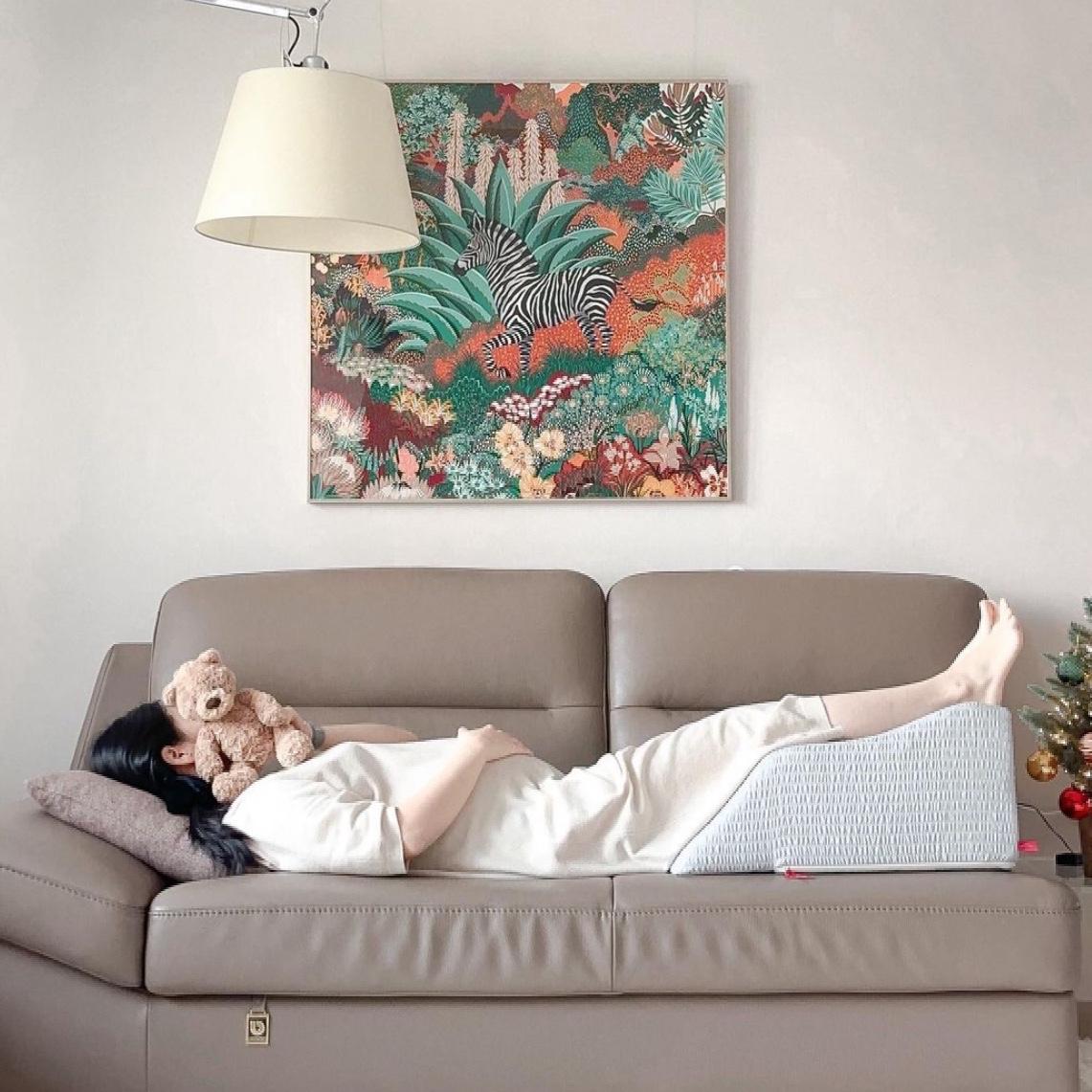 如果膝蓋經常處於屈曲的狀態,不但會影響雙腿的血液循環,還會令膝蓋關節容易疲勞酸痛,加速關節老化,因此建議可以利用枕頭墊高雙腿,以改善膝蓋屈曲的問題,讓血液得以暢通。
