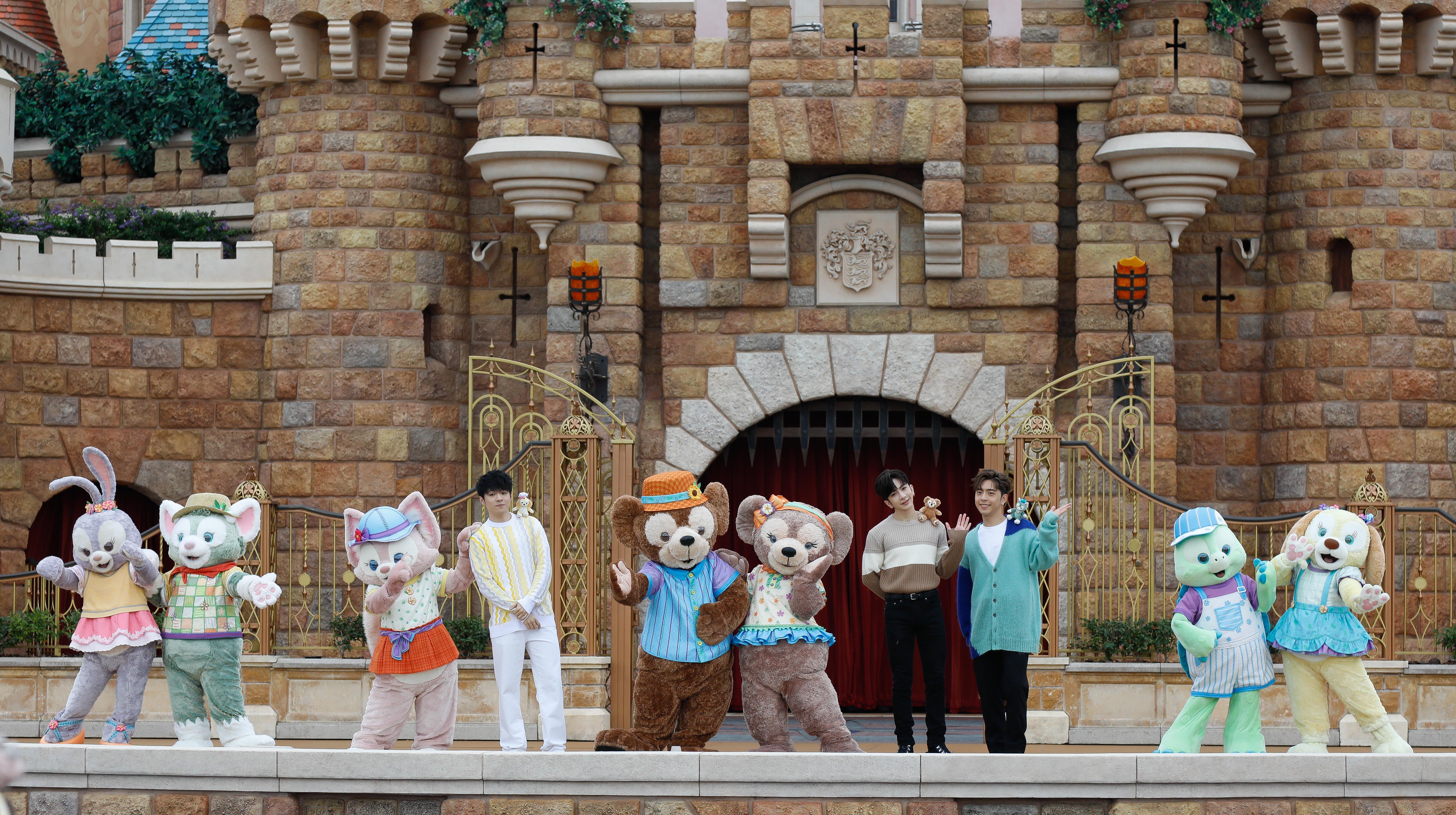 香港迪士尼樂園由4月1日至6月22日推出「Duffy與好友同萌遊」,今天(31日)更邀請到MIRROR成員Anson Lo、Edan及Ian參與慶祝派對。園內設多個主題打卡位,樂園首次將小鎮大街火車站前的花圃以花卉砌成Duffy頭像,並在小鎮廣場擺放了Duffy與好友的塑像擺設來歡迎賓客。