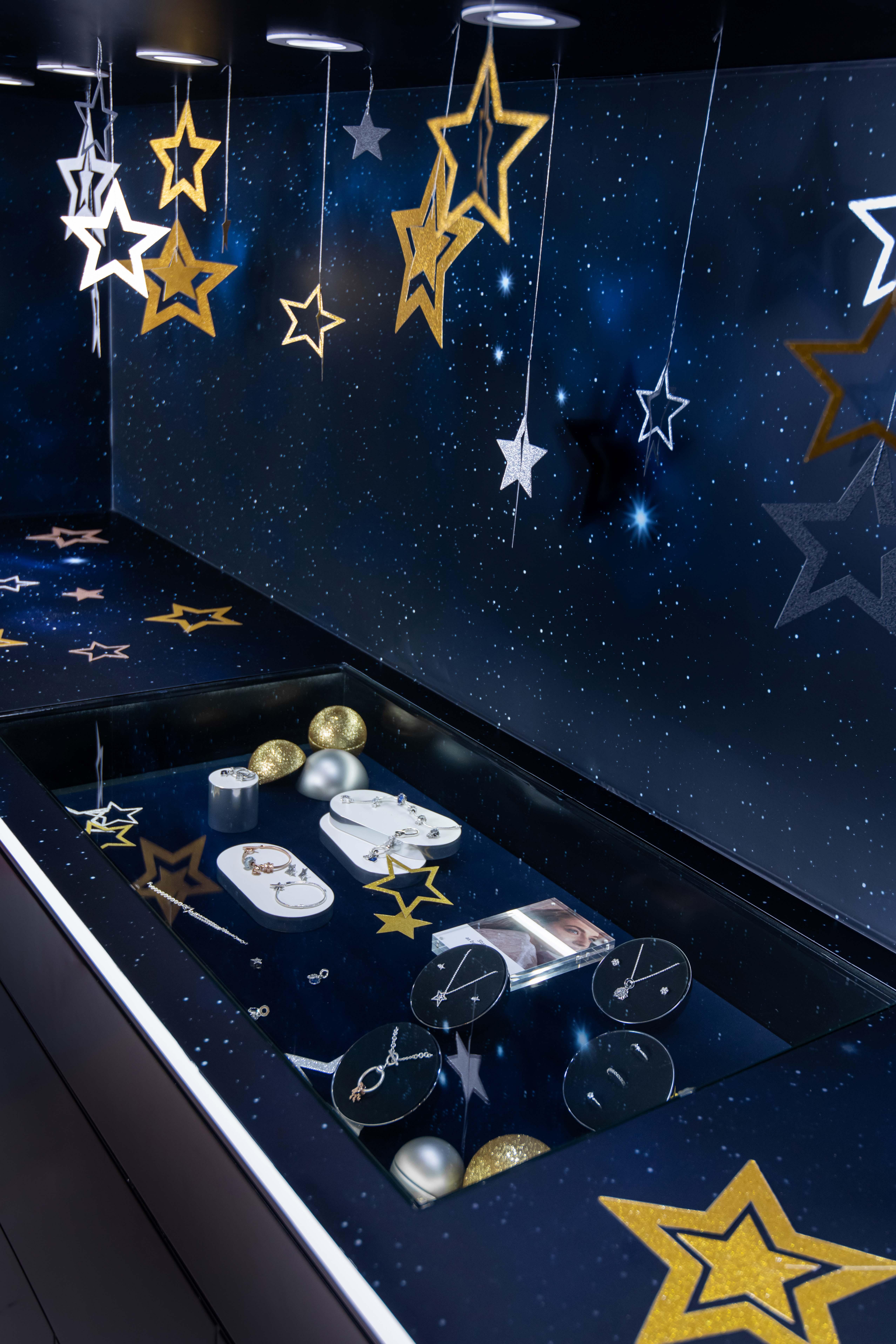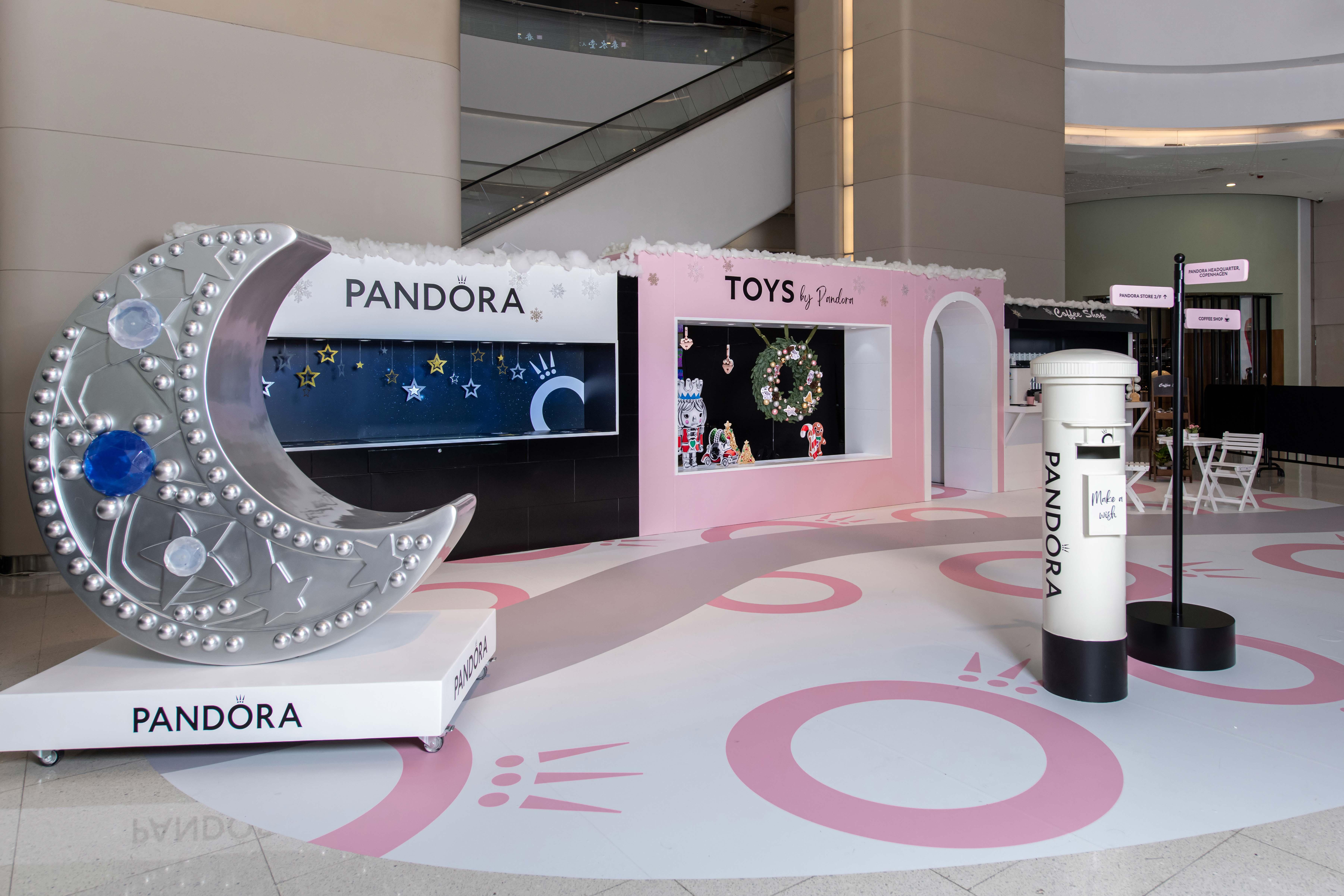 期間限定市集融入多個Pandora Moments最新2022冬季系列的串飾元素,將新月繁星串飾變身成搶眼的巨型月亮裝置,讓大家可坐上印有熠熠流星圖案的半月上盡情打卡。小鎮四周環繞精緻的鏤空雪花掛飾,讓人仿如置身丹麥飄雪小鎮。限定店的中央位置,則運用了多款滿載童趣的Pandora Moments系列串飾作為設計靈感,打造獨一無二的童趣玩具屋,大家更可以走進屋內,與節日經典的胡桃夾子及薑餅人等合照,牆上同時掛有巨型聖誕花圈作裝飾,屋內屋外都充滿聖誕氣氛。