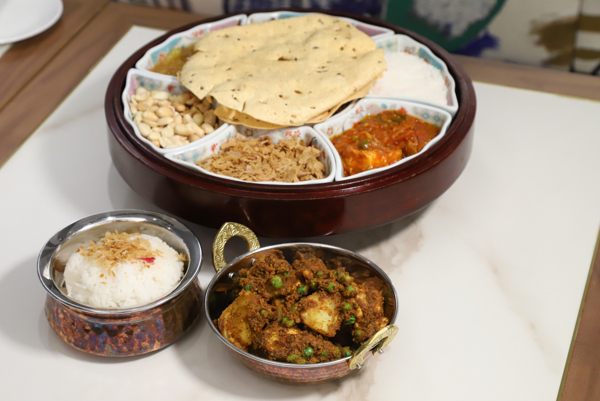 於畢打街的喧鬧中緩緩步上這間擁有過百年歷史的餐廳,推門而入温暖的燈光映照著胡桃木百葉簾,門口的接待員親切地問好並帶著我穿過Jimmy’s Kitchen不同的用餐區域:當中就吸引的便是開放式廚房的吧枱區域,客人可以近距離看到Russell如何製岀一道道的經典佳餚。「我們希望可以和客人的距離近些,讓他們看到看似簡單背後的功夫。」Russell邊說邊演示經典菜式咖喱雞,然後把7種不同的配醬放上木轉盆時,更自豪地表示這是由開店一直用到現在的器皿,現在只剩下6套。
