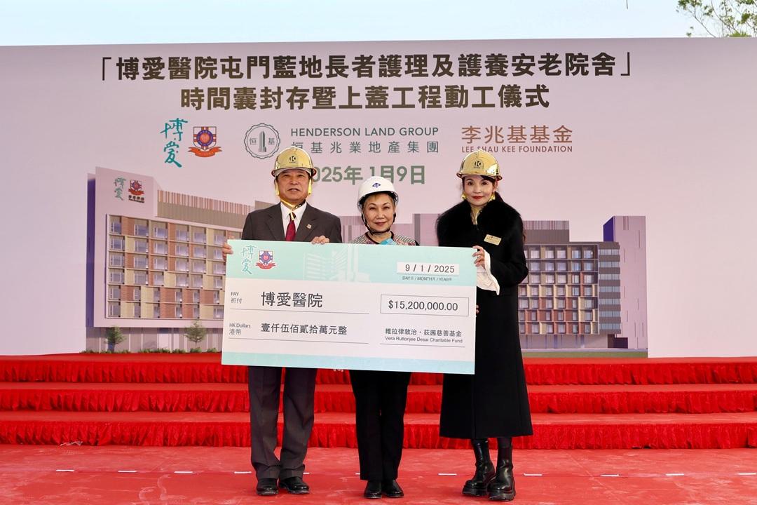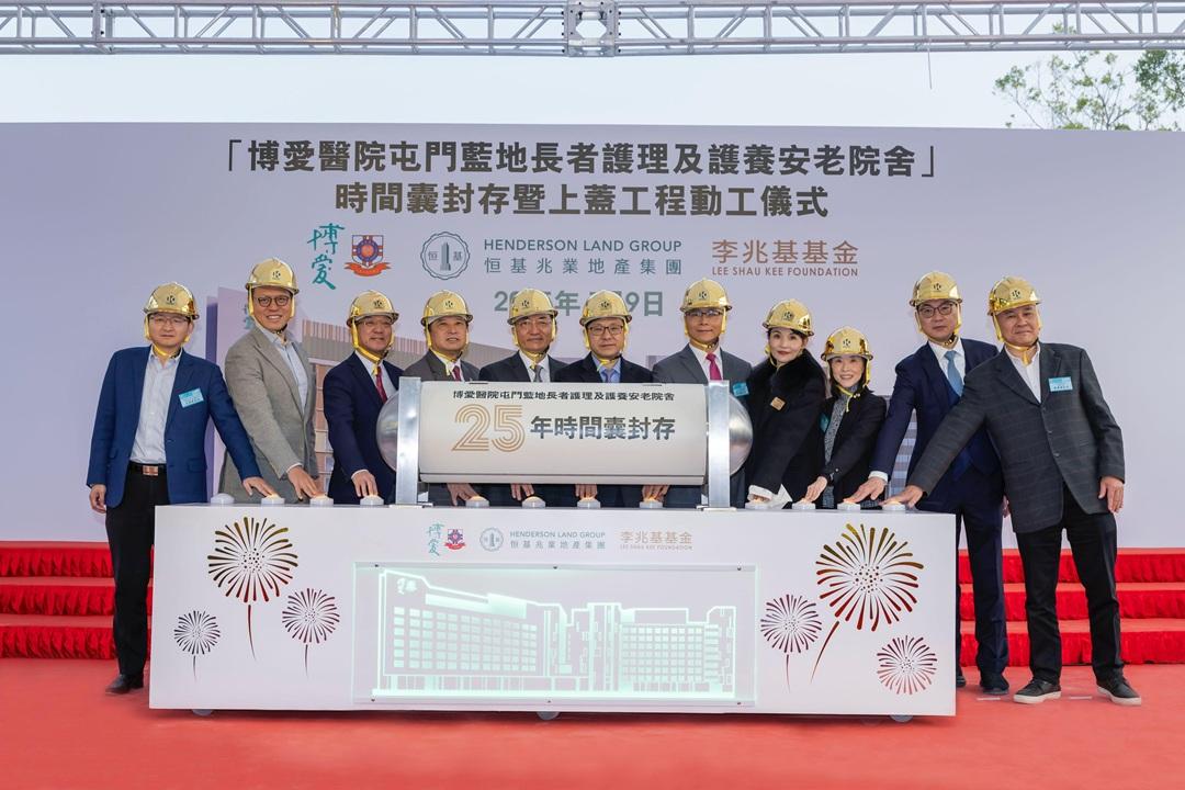 博愛醫院獲李兆基基金贊助,恒基兆業地產集團捐贈一幅位於屯門藍地的十萬呎土地,並獲得社會福利署奬券基金透過「社福機構土地作福利用途特別計劃」撥款,博愛全力推動「博愛醫院屯門藍地長者護理及護養安老院舍」的建設,預計明年落成後,將會提供1,434個宿位,成為全港最大的安老院舍。項目於1月9日舉行了「時間囊封存暨上蓋工程動工儀式」。博愛醫院並宣布將與李兆基基金共同成立慈善基金,為未來院舍營運募集資源,並感謝善長將委派代表出任基金主席,將善心傳承。