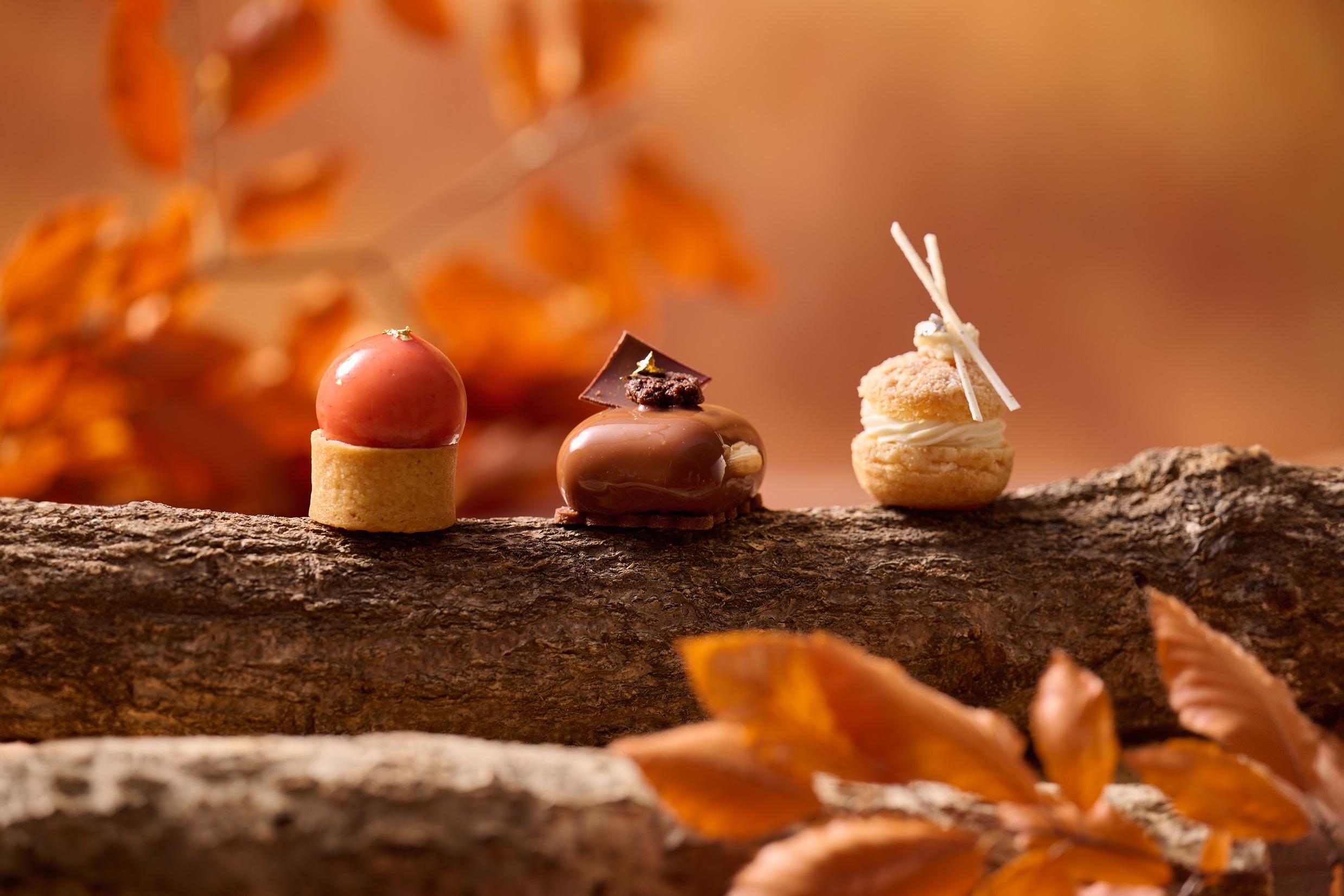 「秋韻果漾」下午茶,以無花果、香梨、肉桂和血橙等秋季時令食材精心製作出一系列鹹甜美點。這些色彩絢爛的下午茶美點優雅地盛載於精緻的木盒中,完美呼應秋日主題,造型相當吸睛,令人賞心悅目。