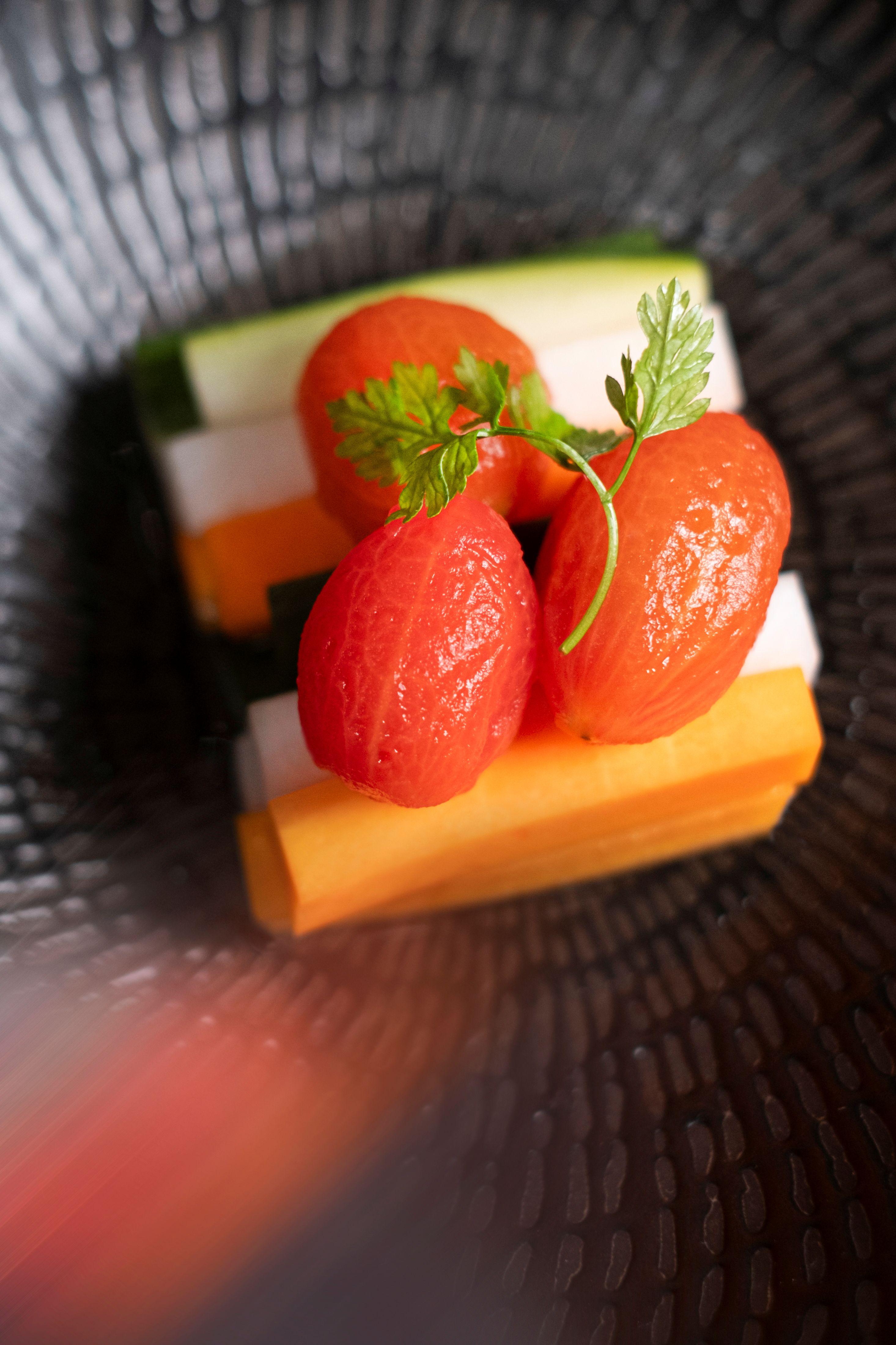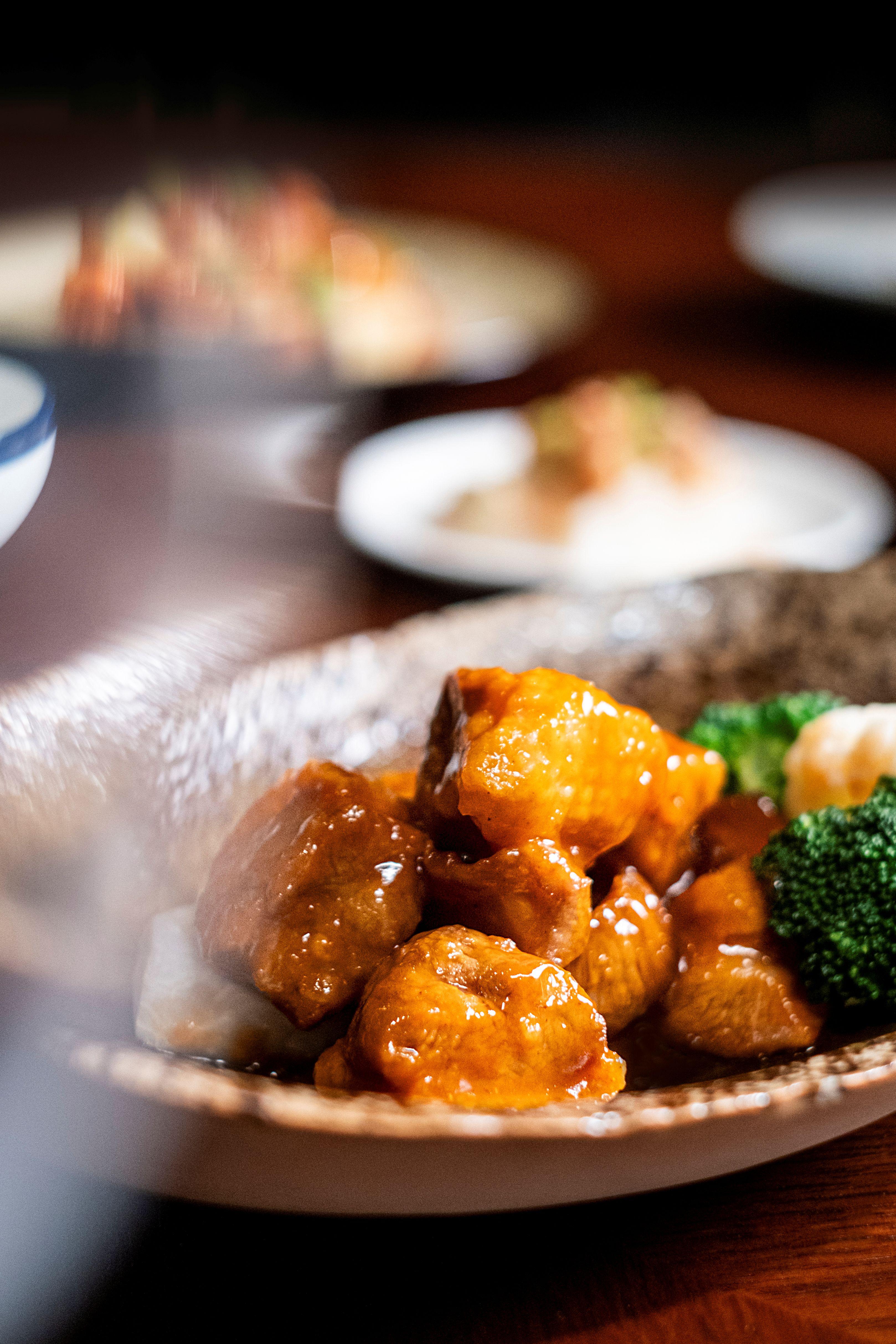 經濟客艙的乘客亦能享用是次聯乘菜單。先有「話梅浸⾞厘茄」作前菜,⾞厘茄以酸甜可⼝的話梅汁醃漬,伴以糖醋醃蘿蔔,酸香醒胃。主菜則有由逸東軒其中⼀道招牌菜變奏⽽成的「鮮沙薑陳⽪焗雞扒、芥蘭及蛋炒飯」,⽤散發淡淡清香的沙薑和陳⽪醃製無⾻雞扒,將雞⾁焗⾄⾦⿈多汁,送飯一流!還有「甜酸菠蘿咕嚕⾁、鮮蔬及絲苗⽩飯」,以酥香多汁的豬⾁搭配新鮮菠蘿及燈籠椒,再與酸甜開胃的糖醋汁同炒,讓醬汁剛好包裹每塊豬⾁。最後還有懷舊粵菜「梅⼦醬芋頭炆鴨、蒜蓉炒雙花及絲苗⽩飯」,以酸梅、⽣薑和辣椒製成的濃香醬汁炆煮鴨⾁,同時加入烹煮⾄軟腍入味的芋頭,再配上蒜蓉炒⻄蘭花和椰菜花及⽩飯,豐富而滿足。