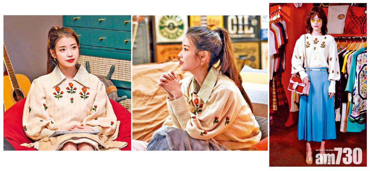 韓國女星IU與內地女歌手李宇春同為GUCCI品牌的代言人。早前IU揀穿2021早秋系列的冷衫錄影節目,她在內裡襯了一件大領恤衫,加上可愛的馬尾造型,調皮甜美。而李宇春卻照辦煮碗,抄足模特兒的配搭,兩者的配襯本領高低立見。(互聯網)