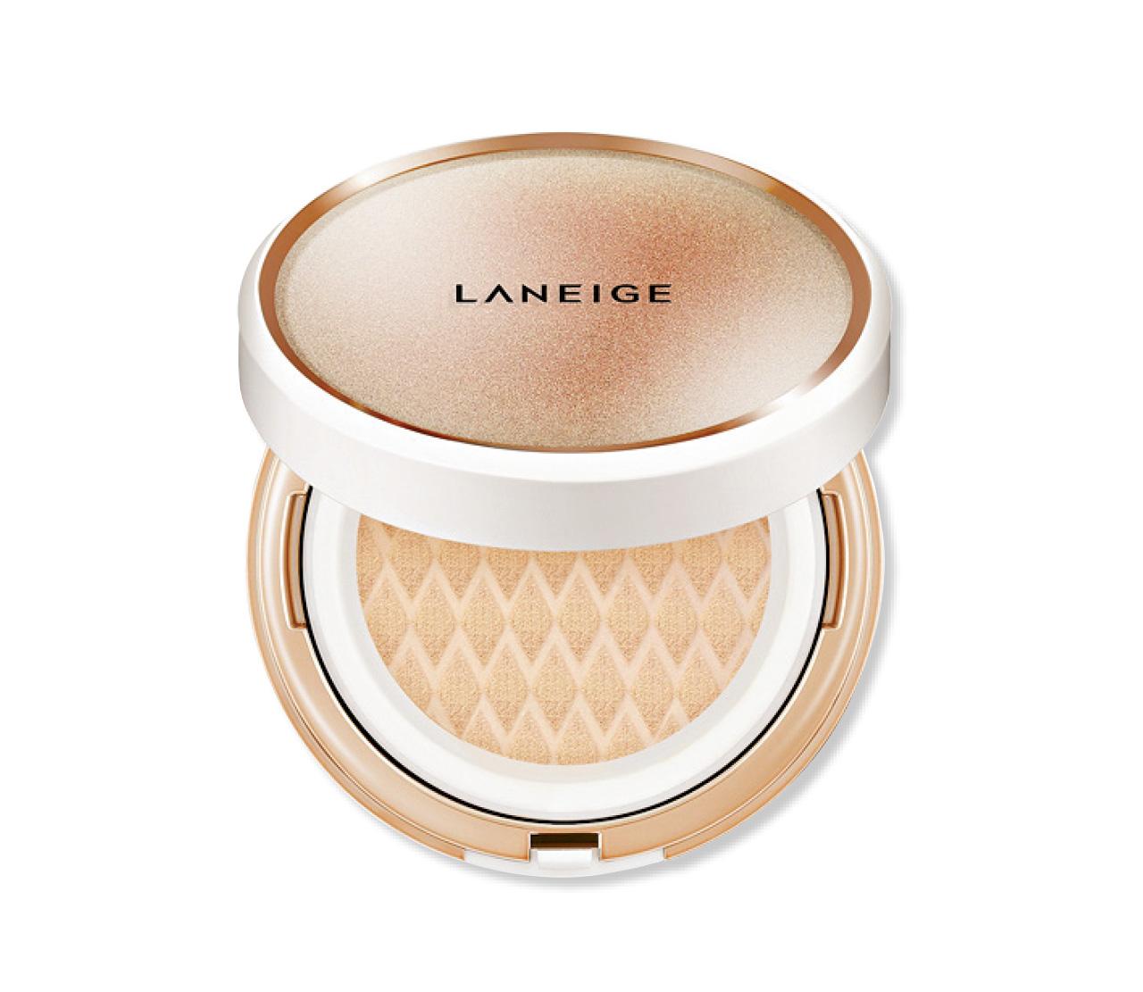 LANEIGE升級BB Cushion Anti-aging 保濕度高,令粉底緊貼皮膚,填滿幼紋,具有自然光澤感,更有SPF50+PA+++高度防曬。($295/15g (粉芯x 2),查詢:3571 9952)