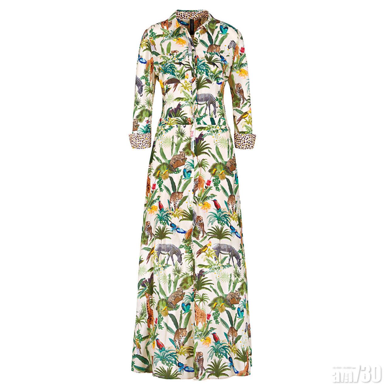 黃綠色的Jungle Print跟夏季的寫意悠閒氣息匹配至極。($TBC,Marc Cain)