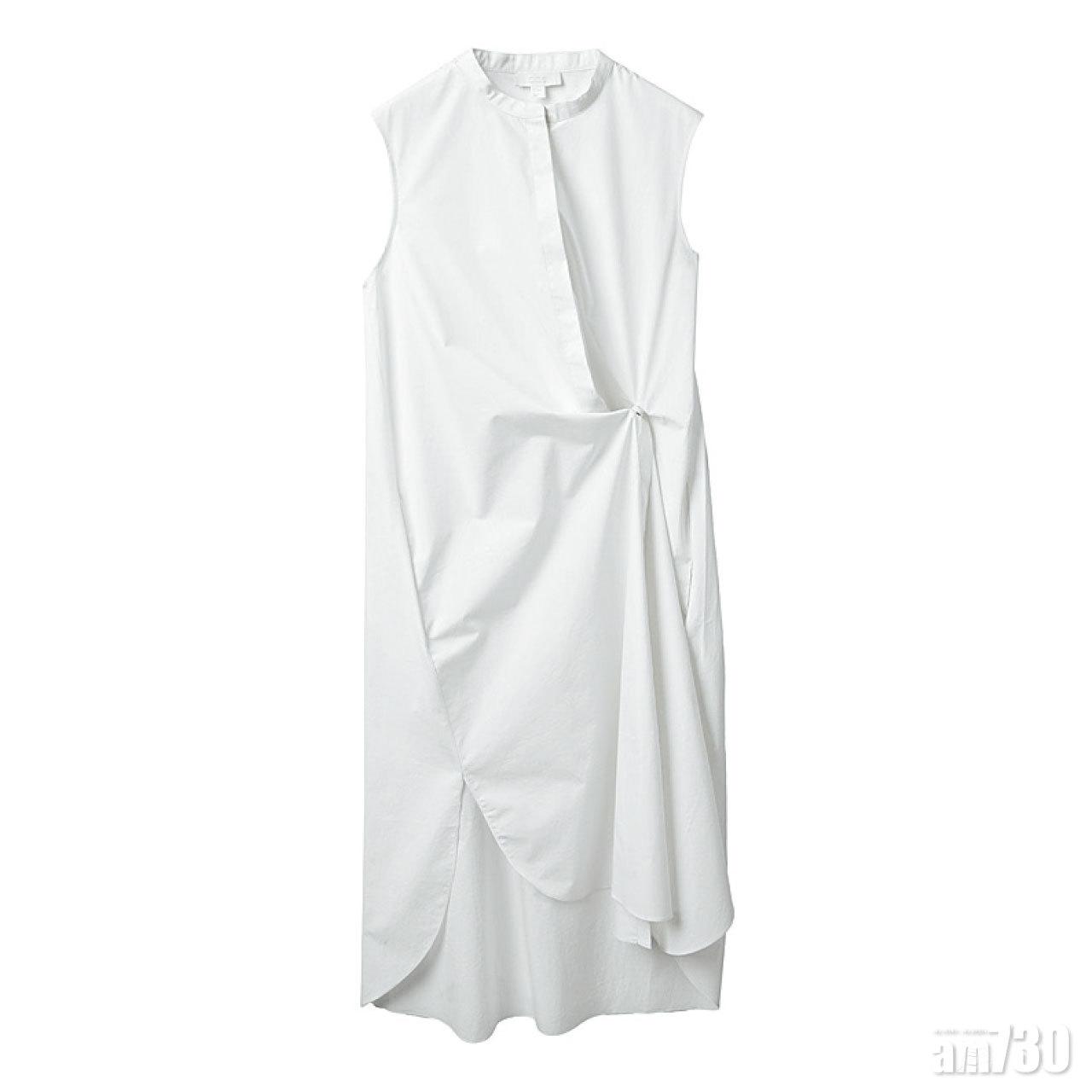 涼快清爽的白色是夏季專屬顏色,裙身打褶不對稱等細節,為淨白連身裙增添亮點,不致太單調。($890,COS)