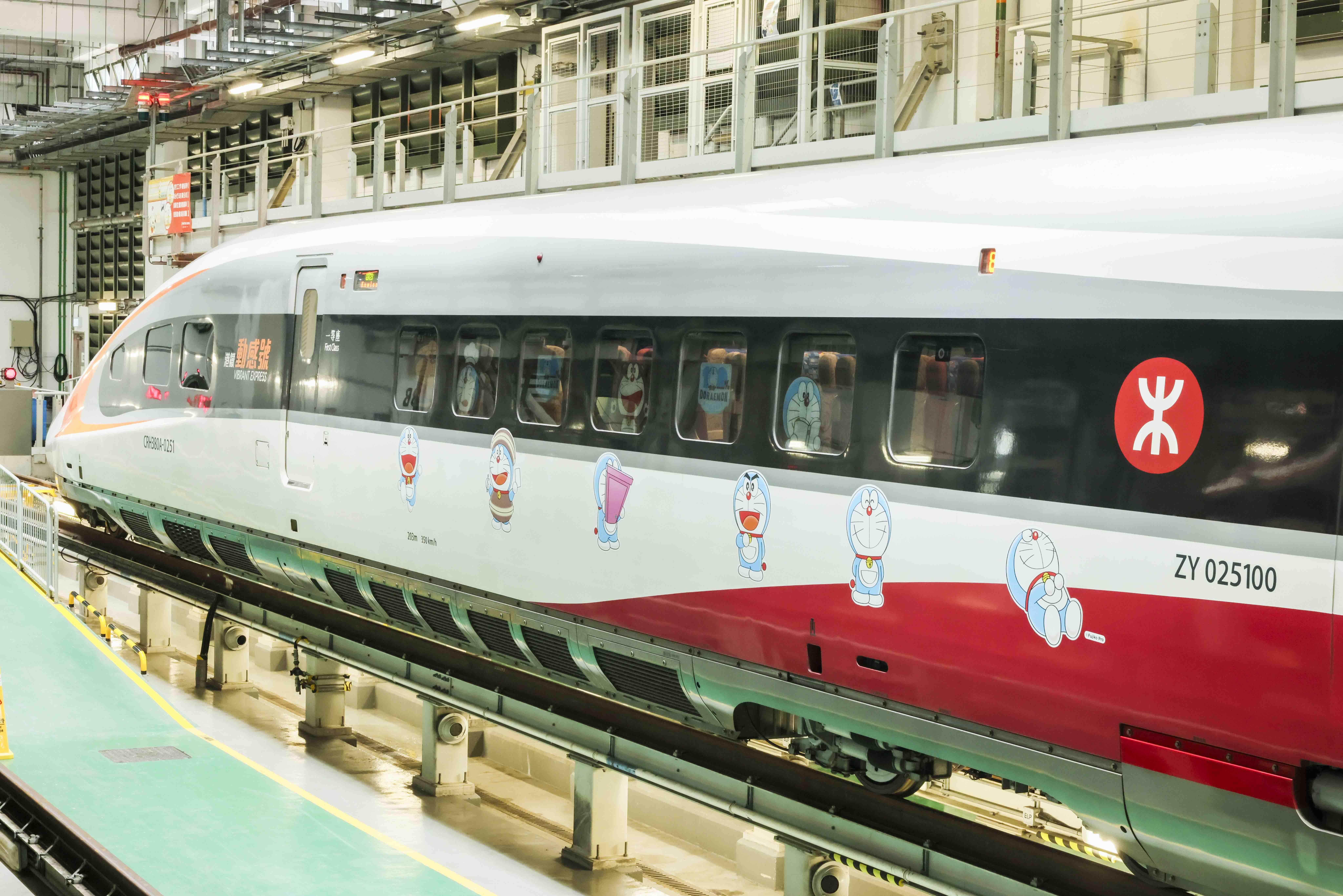 港鐵公司與《100%多啦A夢 & FRIENDS》巡迴展覽的主辦單位AllRightsReserved,推出首列粵港跨境高鐵《100%多啦A夢 & FRIENDS》主題列車,由7月27日起接載旅客往來香港、深圳和廣州,至8月18日於指定日子及班次行走。首班多啦A夢高鐵列車將於7月27日周六早上8時23分開出,前往廣州南站。高鐵多啦A夢主題列車集合超過50個特別造型佈置,讓你沉浸式被多啦A夢包圍,無論在車外車內不同地方都會找到特別造型的多啦A夢蹤影!乘客在特定日子及班次登車時,可於西九龍站領取印有多啦A夢圖案的座位頭枕布。
