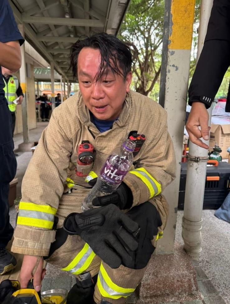 有網民早前在Threads發帖分享,指「宏建(閣)9隻貓同1隻狗,都係呢位消防員救返出嚟」。帖文配圖所見,該名消防員衣衫被汗水浸透,神情疲憊地蹲在地上稍作喘息,旁邊放着水樽補充體力。影片片段則見多隻貓暫被安置於同一個籠內,看上去氣定神閒,無明顯驚恐。