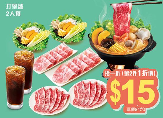 即日起於大家樂網店 eeatCDC.com或透過 Club 100 3.0手機程式登入eatCDC.com,開賣多款火鍋二人餐券!超價必買有五款超人氣火鍋二人餐券,凡訂購指定二人餐券兩套,第二件即享1折優惠,每張訂單最多限購2件,折扣以最低價格之產品計算。當中包括人氣之選「 打堅爐 」二人餐券、「日式壽喜燒鍋」二人餐券、「韓式泡菜辛辣鍋 」二人餐券以及「穀飼肥牛和牛鍋」二人餐券等,以「日式壽喜燒鍋 」二人餐為例,餐券$154,可$15加購「打堅爐」二人餐,即以1折價錢便可以享用。