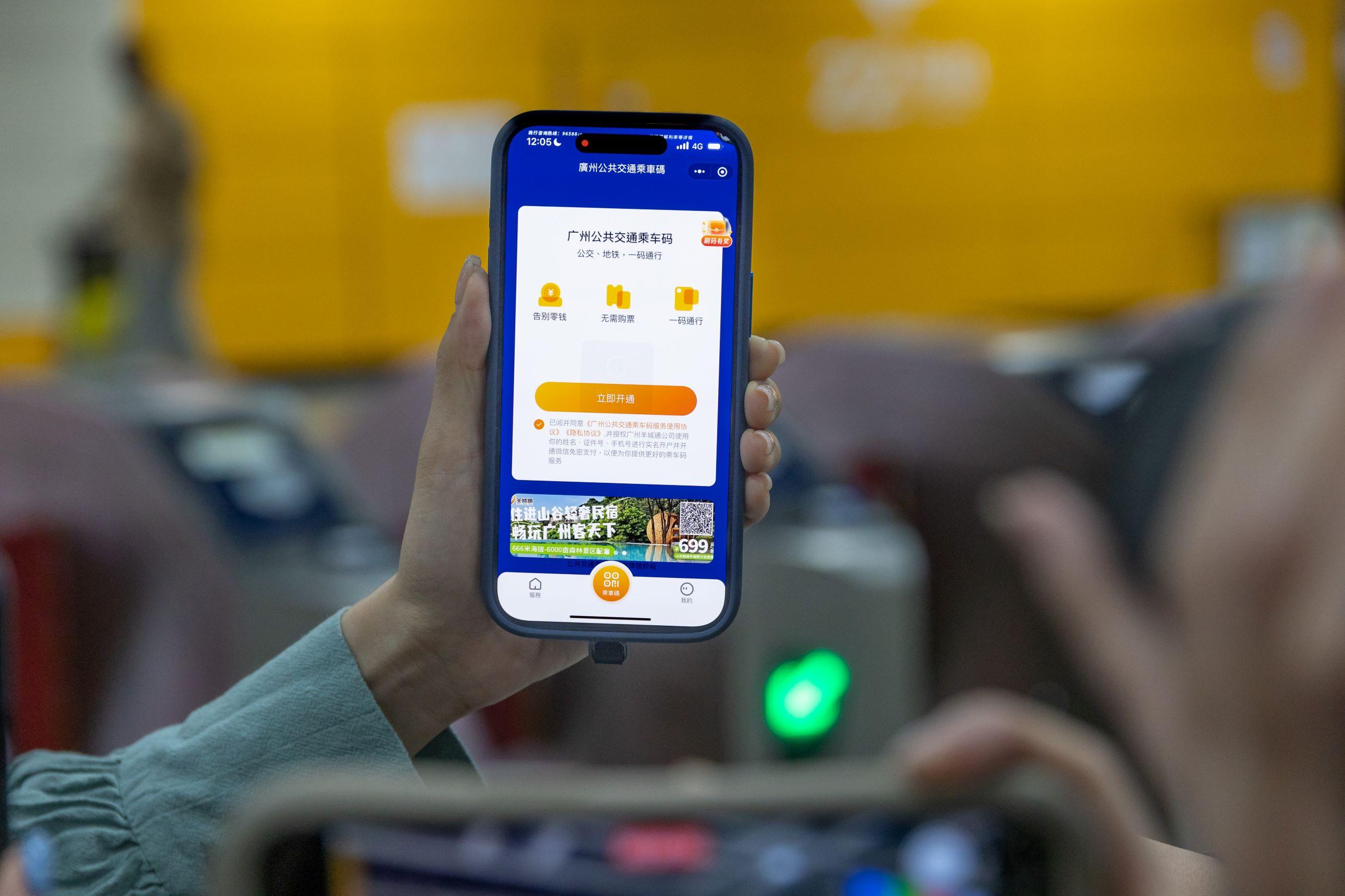 4.或可直接下載「羊城通」app,授權自動付款服務,即可使用乘車碼搭乘公共交通工具。