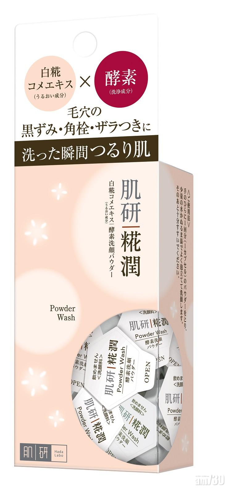 肌研糀潤修護毛孔淨透酵素洗顏粉 ($99/20個) 蘊含白米酵素,去角質,令肌膚清透富光澤;潔淨毛孔內的污垢。加少量清水後能輕易搓出細緻綿密的泡沫,用後肌膚嫩滑不繃緊。