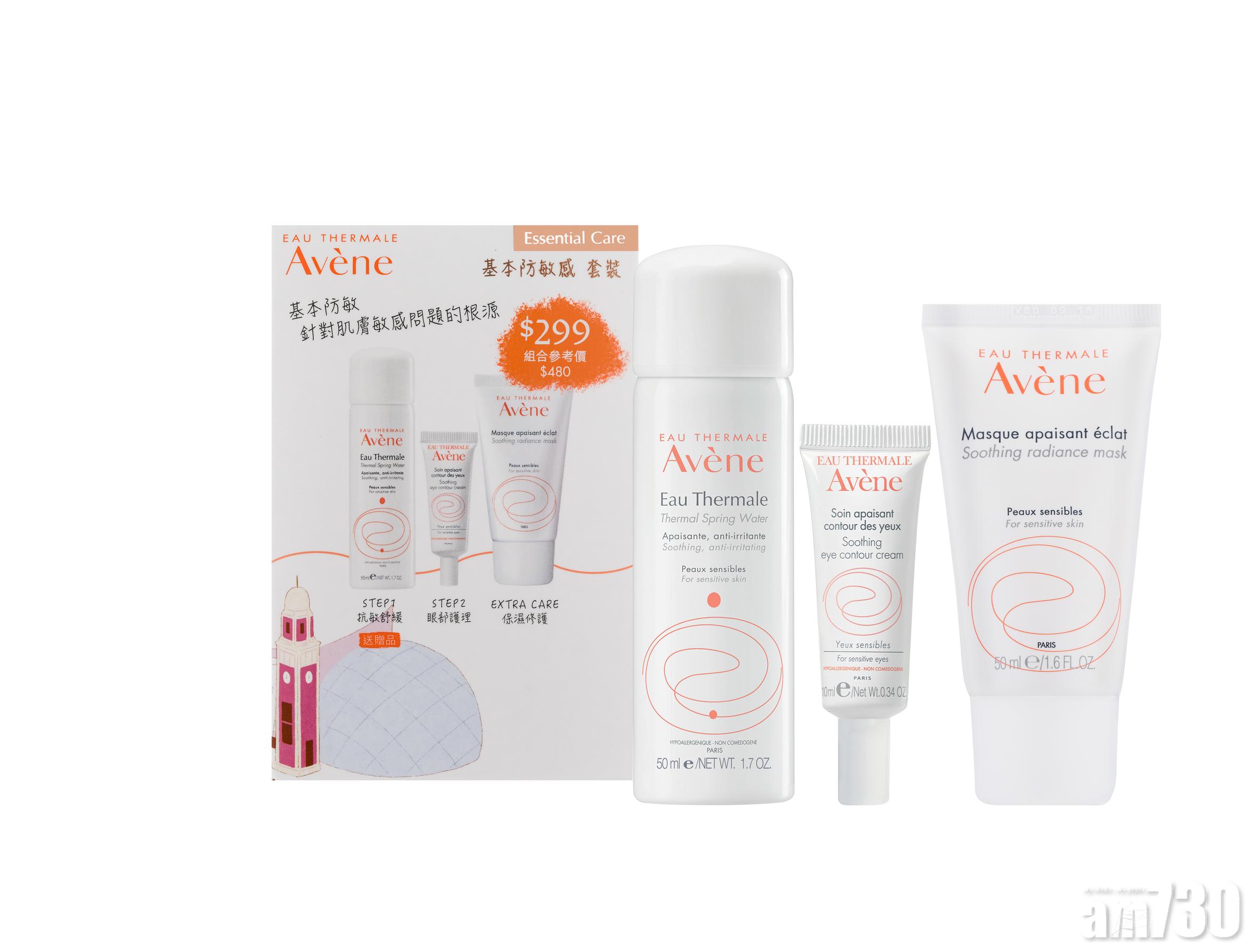 Essential Care 3-Step Set基本防敏套裝 優惠價 $299 .Thermal Spring Water Collector抗敏活泉水限量版 (50ml) .Soothing Radiance Mask亮澤保濕面膜 (50ml) .Soothing Eye Cream 保濕眼霜(10ml)