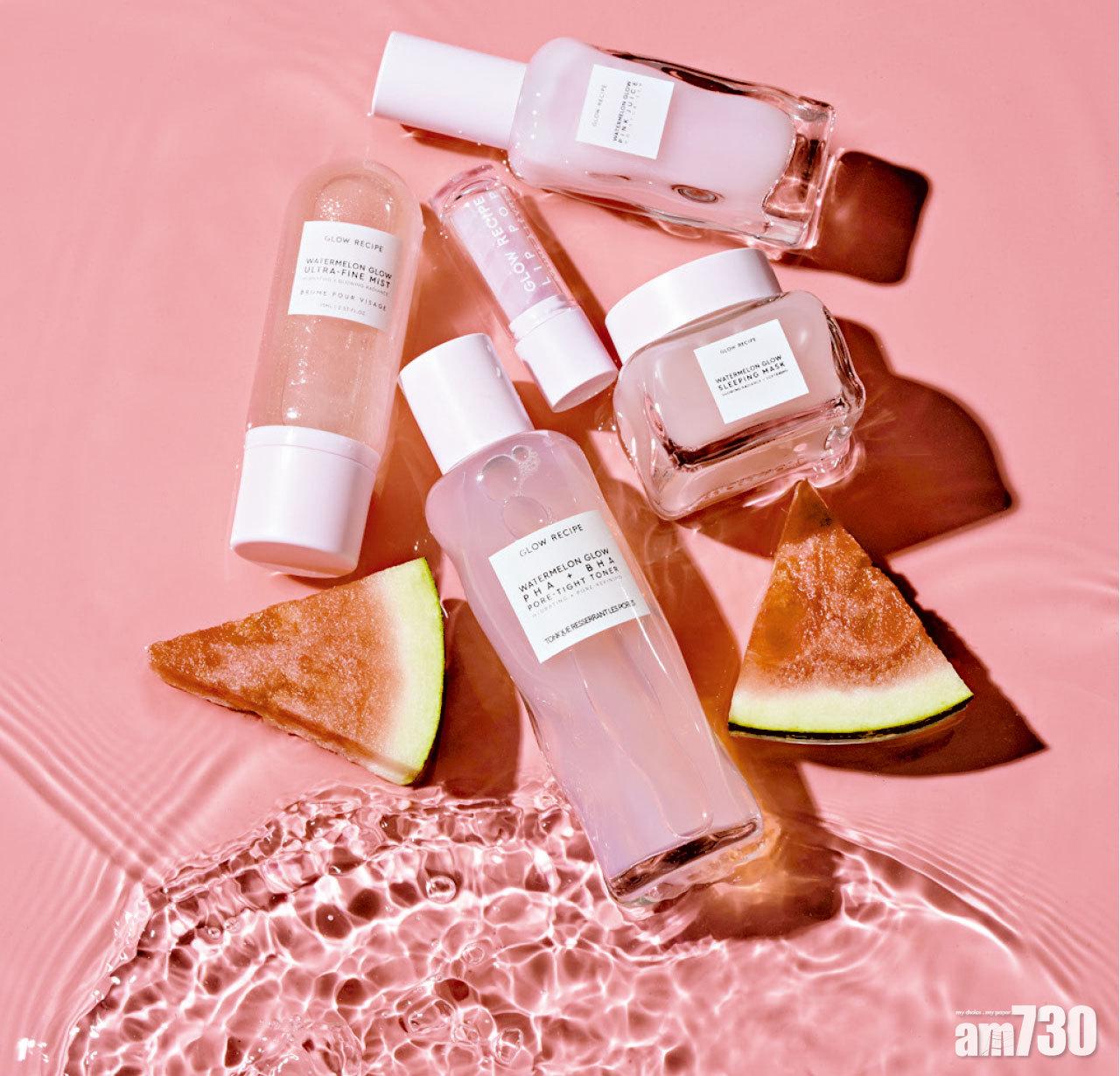 西瓜亮活輕柔保濕噴霧 $220/75ml 西瓜亮活毛孔緊緻爽膚水 $120/40ml 西瓜亮活潤色護唇膏 $175/3.5g 西瓜亮活睡眠面膜 $335/80ml 西瓜亮活粉紅保濕乳液 $305/60ml