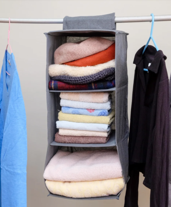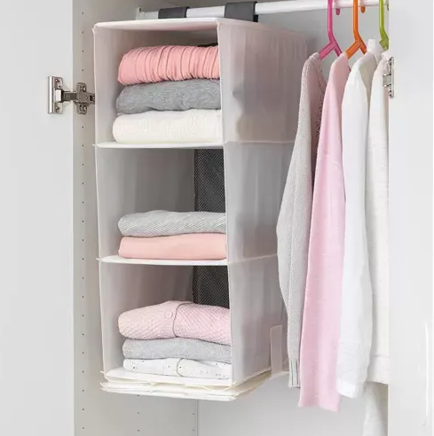 不少女生衣櫃愛用的收納好物,可掛於衣櫃內的5格掛袋,放衣物、手袋、雜物,慳位又靈活,節省空間。