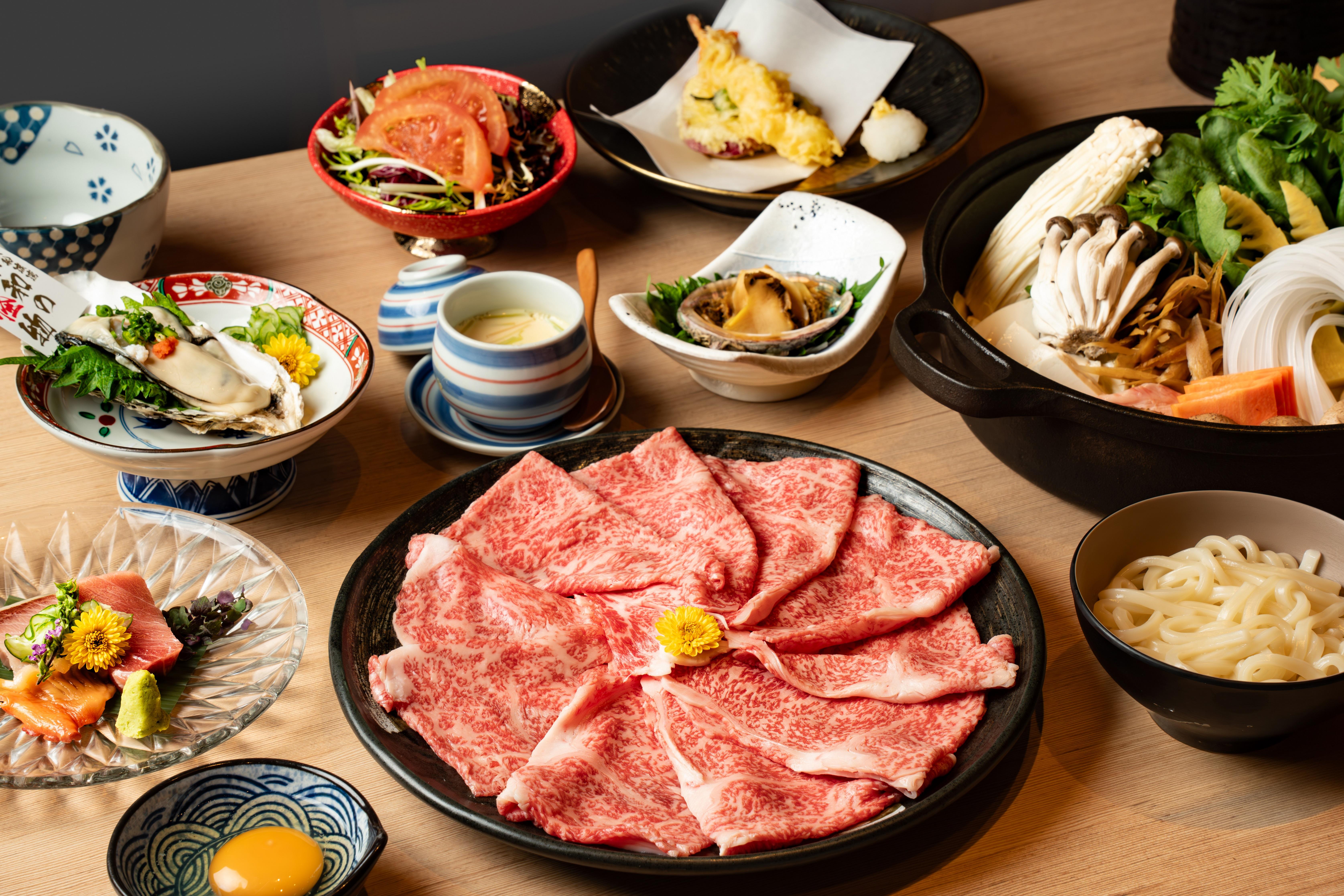 另外店家亦有推出價錢較親民的A4 鹿兒島和牛盛宴菜單($680/位),可以免費追加 A4 鹿兒島和牛的壽喜燒或涮涮鍋盛宴菜單。菜單同樣提供 6 款精心烹調的日式前菜,包括:日式磯煮鮑魚、日式番茄沙律/蟹籽沙律、時令日本生蠔(1 隻)、是日豐州直送刺身(3 片)、雪場蟹茶碗蒸及雜錦天婦羅,以及無限追加日本野菜、稻庭烏冬及日本雞蛋。