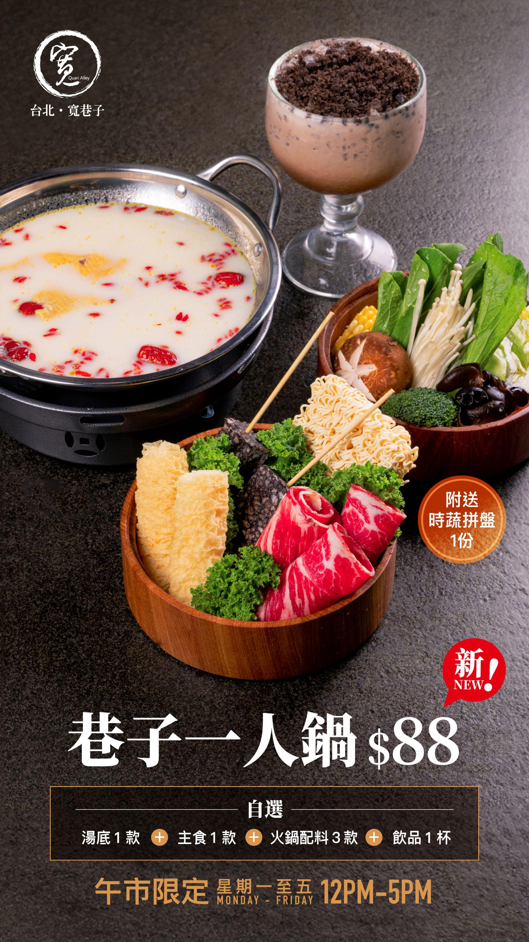 「台北‧寬巷子」午市一人鍋$88起