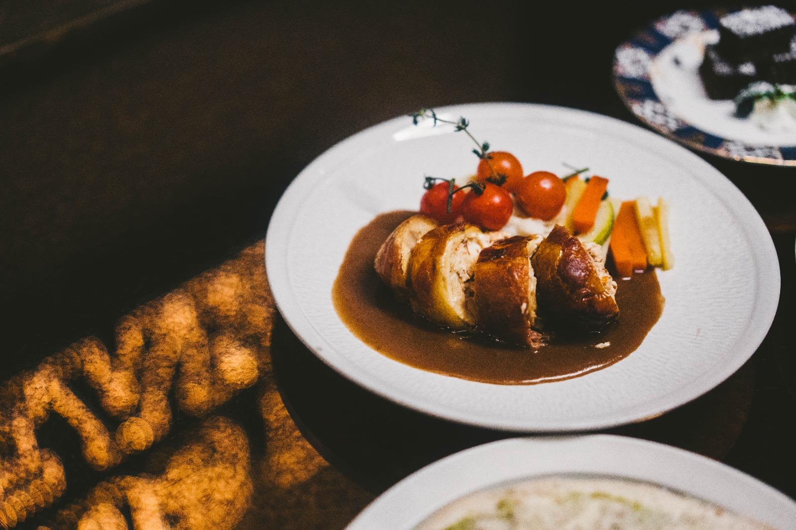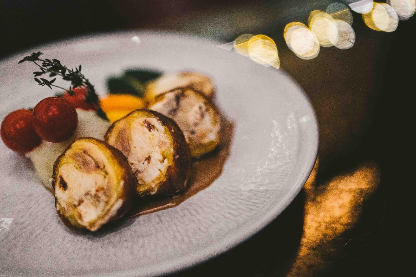 新店沿用大角咀店的資深廚師團隊,精心設計的多國菜餐單,在保留以往招牌美食的同時加以改良,務求以想像與味覺喚醒食客沈寂多時的音樂靈魂。招牌美食「威靈頓牛柳」($1,088),採用肉質軟嫩的頂級菲力牛柳,以酥皮層層包裹,再以180度高溫烤焗,西班牙36個月橡果級火腿精華慢慢滲入其中,肉味香濃,口感十足;「手工芝士烤雞卷」($288),選用新鮮雞最嫩滑的部份,饀料加入忌廉芝士及日曬番茄乾,增添口感亦有助解膩。外層以巴馬火腿包覆,採先蒸後焗的烹調方式,外皮香脆同時保持肉質鮮嫩。「炙燒松葉蟹膏意大利飯」($368),意大利飯以自家高湯熬煮,湯底加入龍蝦、蝦、蟹膏等精選食材熬製 12 小時,鮮香味濃,最後加上松葉蟹蟹膏、北海道刺身級帶子及澳洲海膽,大海的味道盡數濃縮,啖啖海洋鮮味。