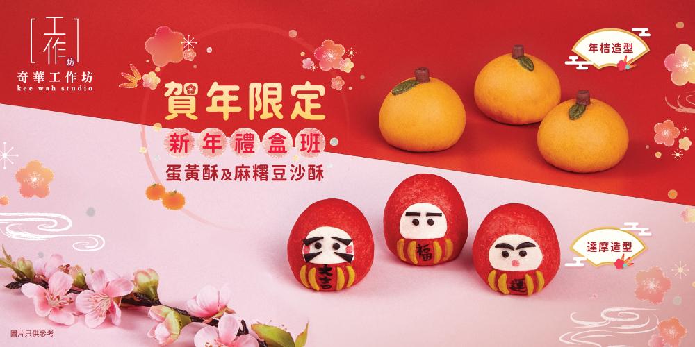奇華工作坊首次推出分別以年桔及許願祈福的達摩造型的「蛋黃酥及麻糬豆沙酥課堂」($650),造型精膩又可愛!「年桔造型蛋黃酥」以橙色外皮包裹著蛋黃豆沙餡,象徵吉祥,讓人期待新的一年財源廣進;「達摩造型麻糬豆沙酥」則以滿有喜慶的紅色外皮包裹香甜軟糯的麻糬豆沙餡,加上不同可愛表情,寓意健康長壽,帶來平安幸福。