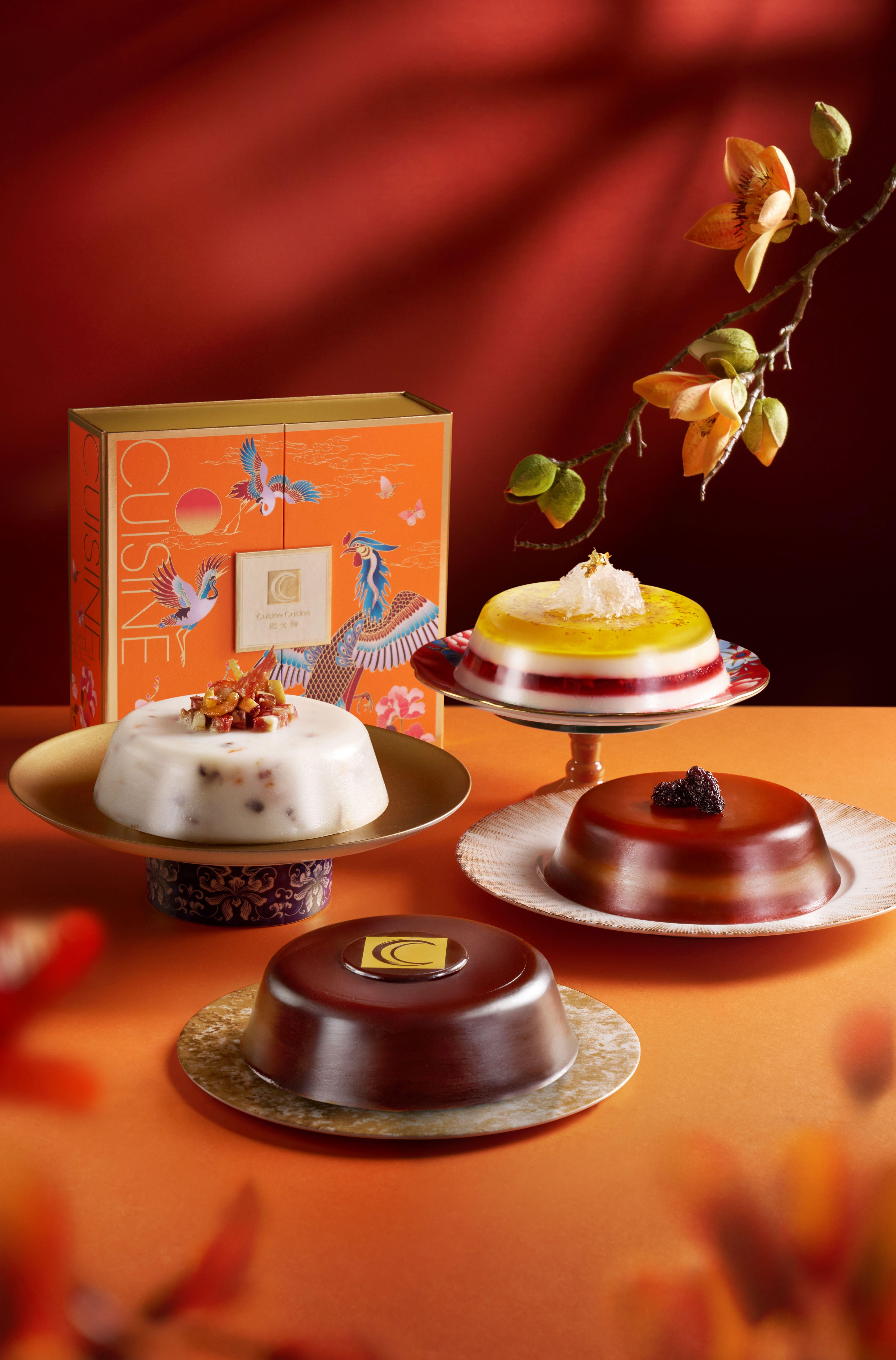 酒店更特別推出多款年糕禮盒套裝,每款禮盒均可搭配臘味厚切蘿蔔糕或賀年紅糖椰汁年糕及其他精緻美點,送禮夠體面。禮盒包括 臻貴新春賀年套裝(港幣$1,388)、尊選茗茶組合(港幣$1,028)以及 喜悅新春組合(港幣$888)。