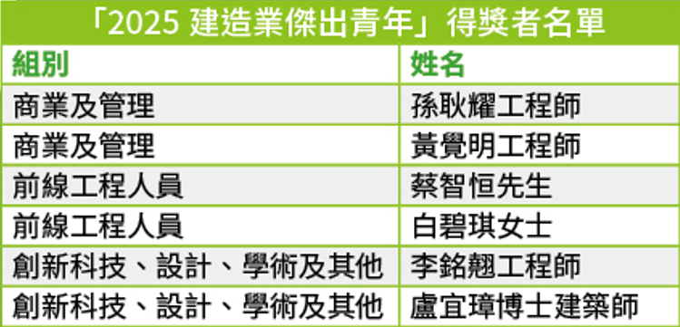 六位得獎青年的故事,印證了建造業正在從傳統走向現代,從本地邁向國際。他們的成功經驗展現了香港建造業的活力與多元發展。