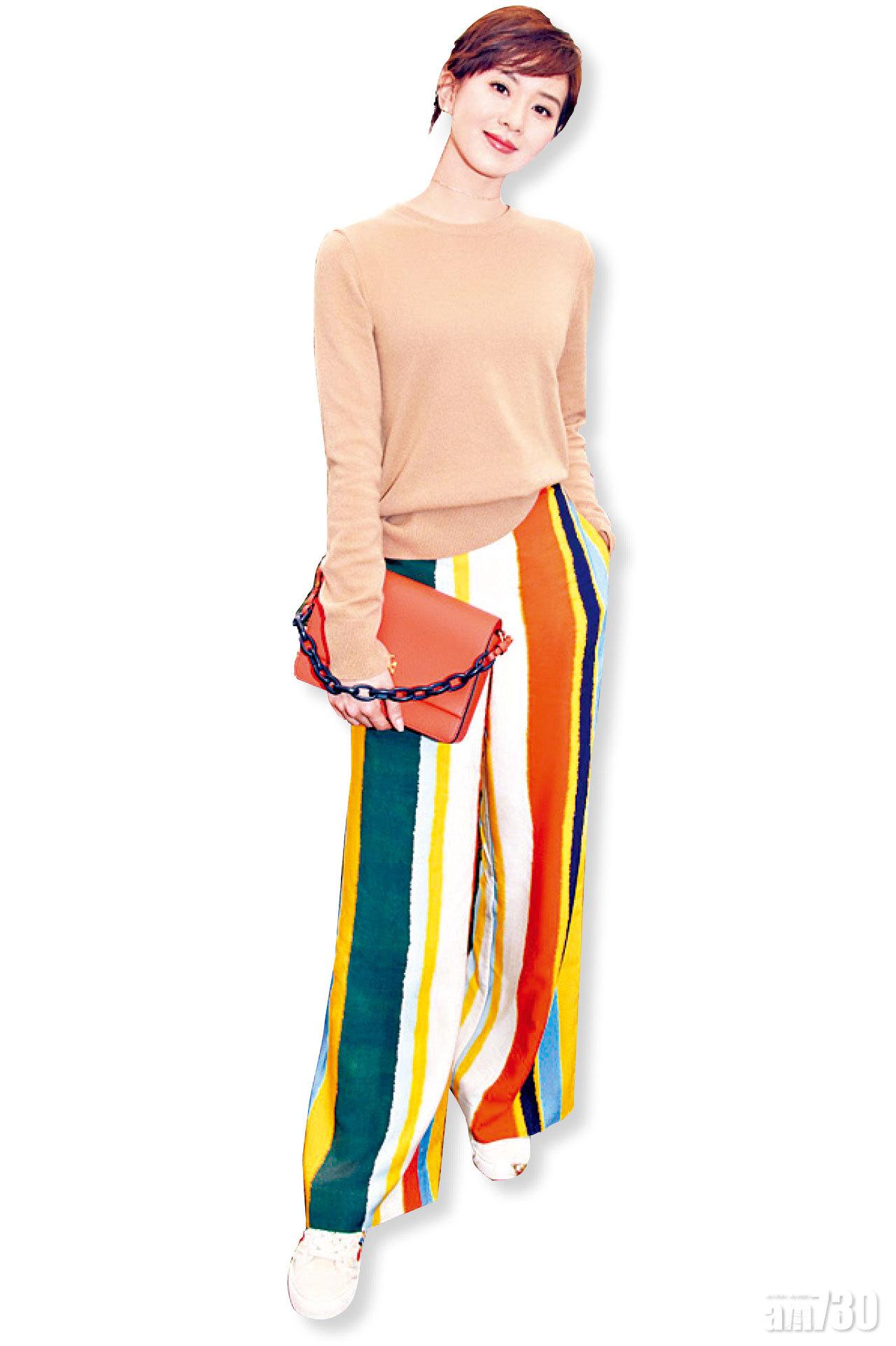 內地女星劉詩詩日前現身紐約時裝周的Tory Burch 2018秋冬系列發布會,她身穿淺啡上衣襯彩色直紋闊腳褲,潮配白鞋,加上她的率性短髮,一派輕鬆休閒。