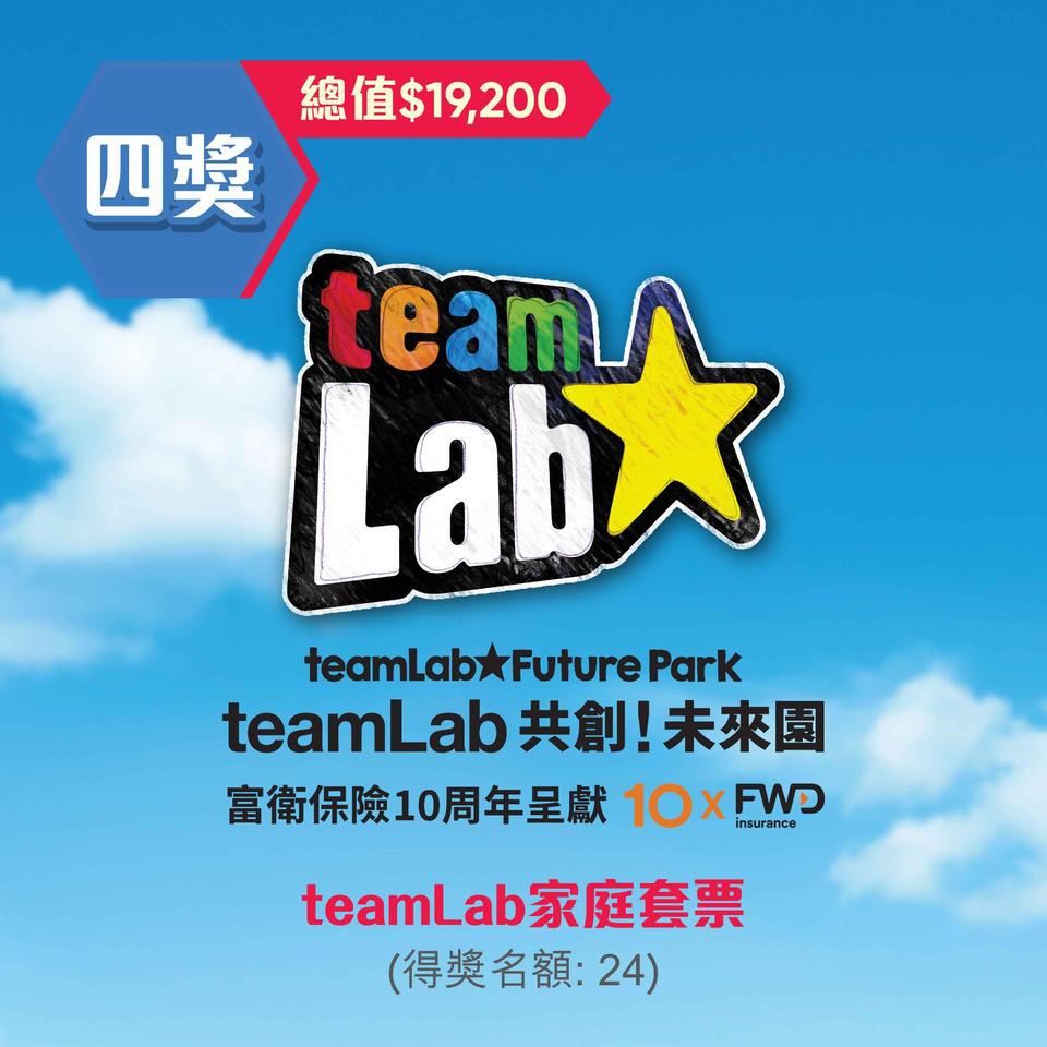 四獎:teamLab家庭套票 ,名額24名 (總值$19,200)