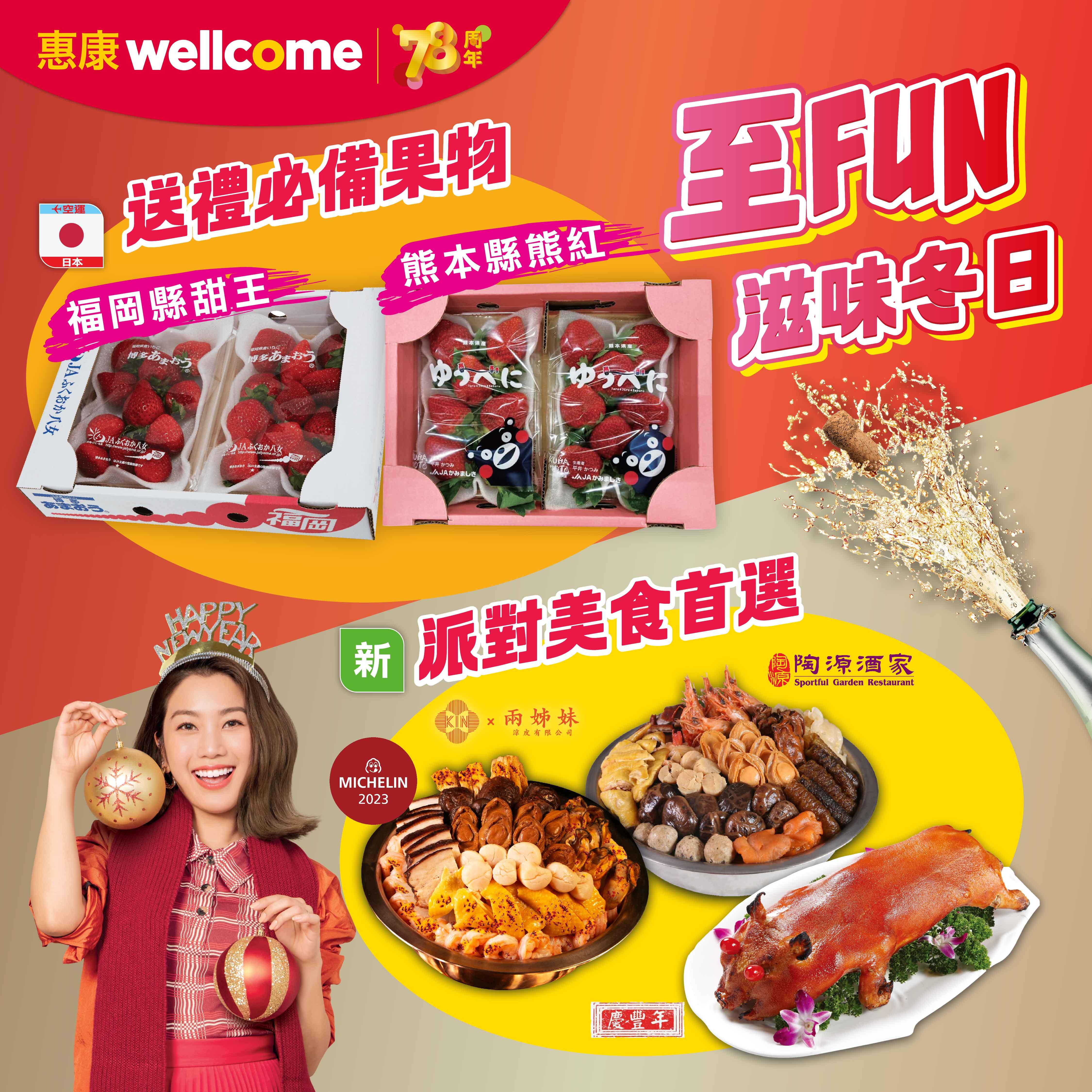 現在正值士多啤梨當造季節,惠康有多個產地的士多啤梨供大家選擇,包括日本,韓國,丹東等。當中更有多款九州日本士多啤梨品種可挑選,包括福岡的「甜王士多啤梨」,熊本的「熊紅士多啤梨」及「戀稔士多啤梨」,長崎的「夢之香士多啤梨」等。另外更有新推出的日本「笑顏士多啤梨」及丹東「粉紅玫瑰士多啤梨」,總有一款可以滿足你。