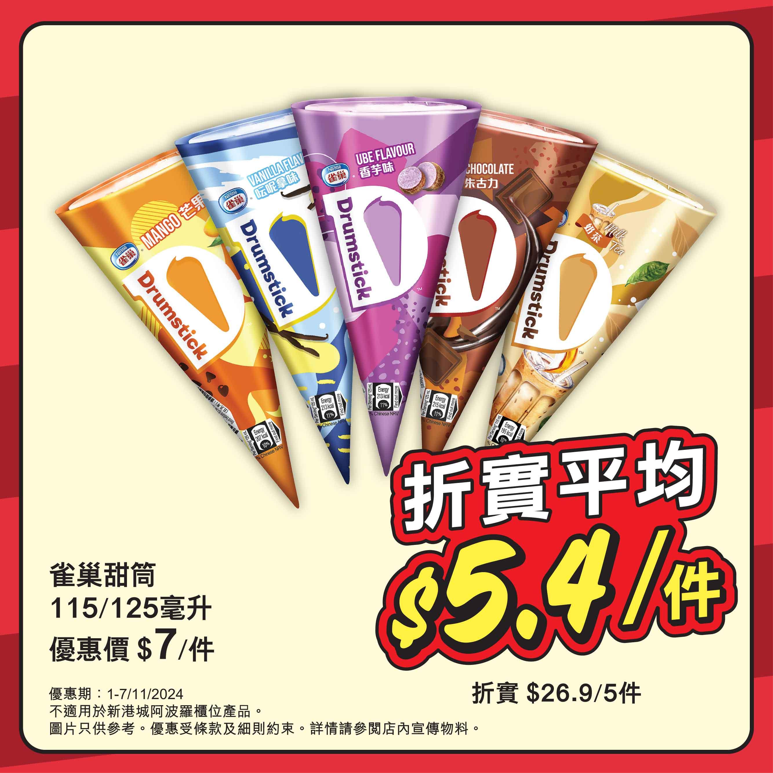 雀巢甜筒折實價只需 $26.9/5 件,平均每件只需 $5.4。