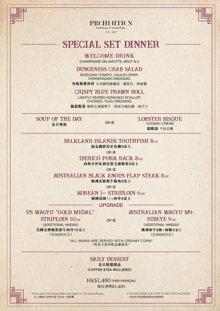 扒房推介2023 1.Prohibition扒房‧酒吧:美國禁酒時代主題 5道菜享韓牛+龍蝦湯