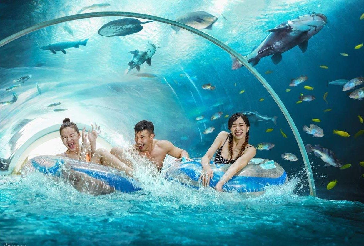 探訪完海豚,我們再去「新加坡水上探險樂園」盡情遊樂!樂園入面有14個主題區,齊集多項遊樂設施,例如飛躍極限滑道、激流滑道等。如果想慢慢探索水上樂園,建議先沿著探險河流玩水泡飄浮,漂流穿過海底世界和透明隧道,欣賞周邊的海洋生物。想進一步享受水上遊樂活動,一定要參加水上樂園內的浮潛活動,大家可以在有近4米深的巨型水池中與20,000條熱帶魚一起游泳,就好像進入了海洋世界一樣美麗夢幻,重點是不設額外收費,入園即玩!另外聖淘沙名勝世界內亦設有海洋館,有海星、鯊魚、 水母等等海洋生物,裡面更設有科學實驗室,遊客能在此全方位學習海洋生態的知識,活動內容超豐富!
