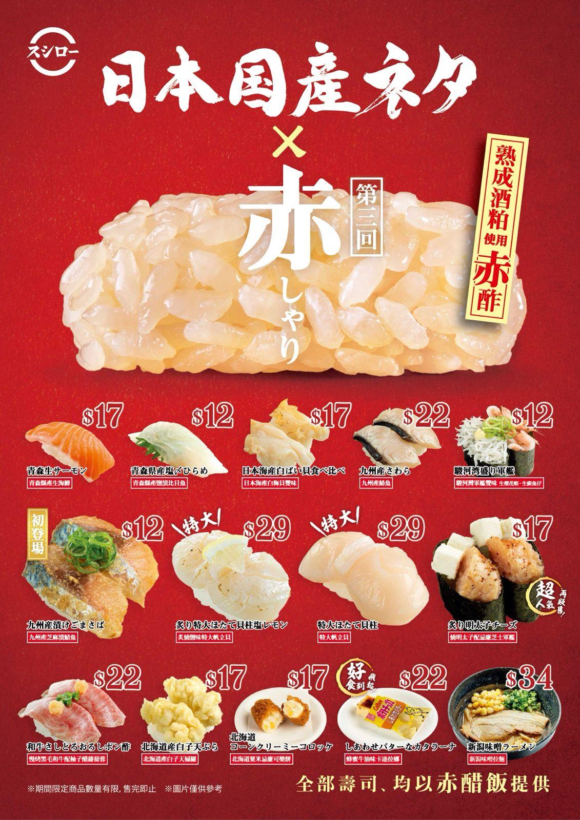 壽司郎推出期間限定【日本國產🇯🇵X赤醋飯】,由5月2日(四)開始販售,本月所有壽司均以「赤醋飯」製成。擁有獨特醇厚香氣及圓融酸味,配上多款來自日本國產的精選食材,令壽司滋味層次瞬間倍升。限定商品於5月2日(四)正式開售,於壽司郎全線分店有售(奧海城2期店 除外)。期間限定商品數量有限,售完即止。