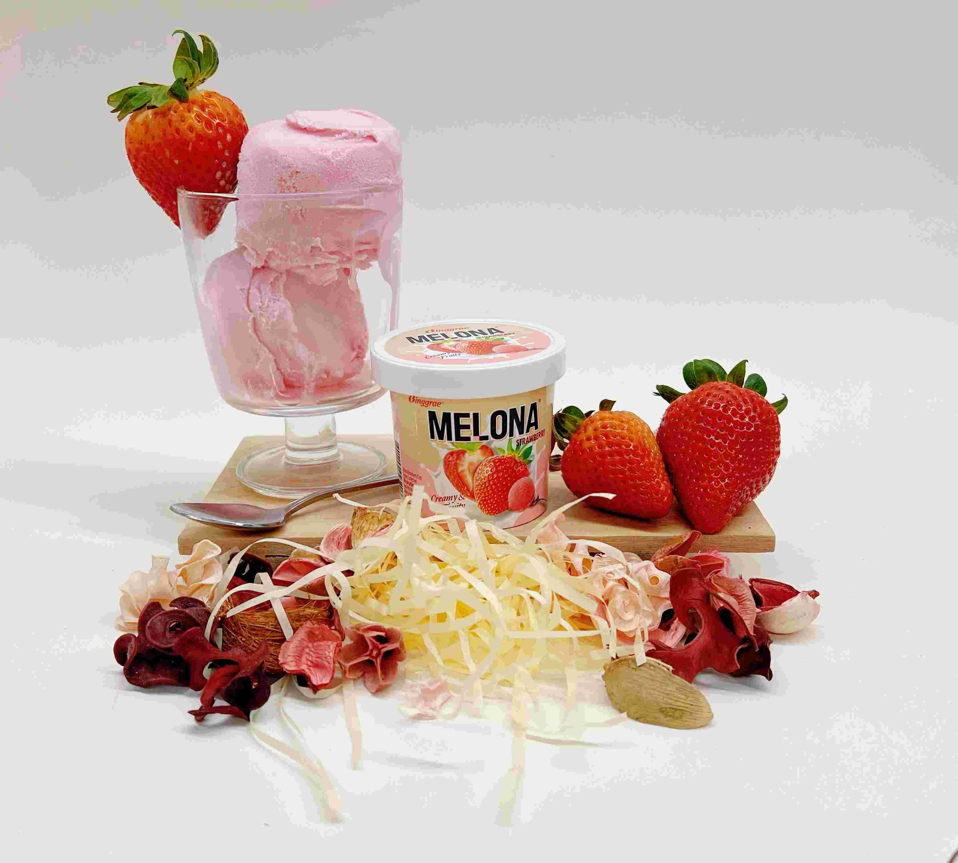 「Melona 士多啤梨雪糕杯」粉紅色的香滑雪糕少女心滿瀉,相信沒有女生可以抗拒。每杯雪糕均內含 9% 鮮甜的士多啤梨果醬,令整體味道更濃郁豐富,配搭幻滑的牛奶雪糕基底,恰到好處地滿 足大家對於雪糕的渴望!