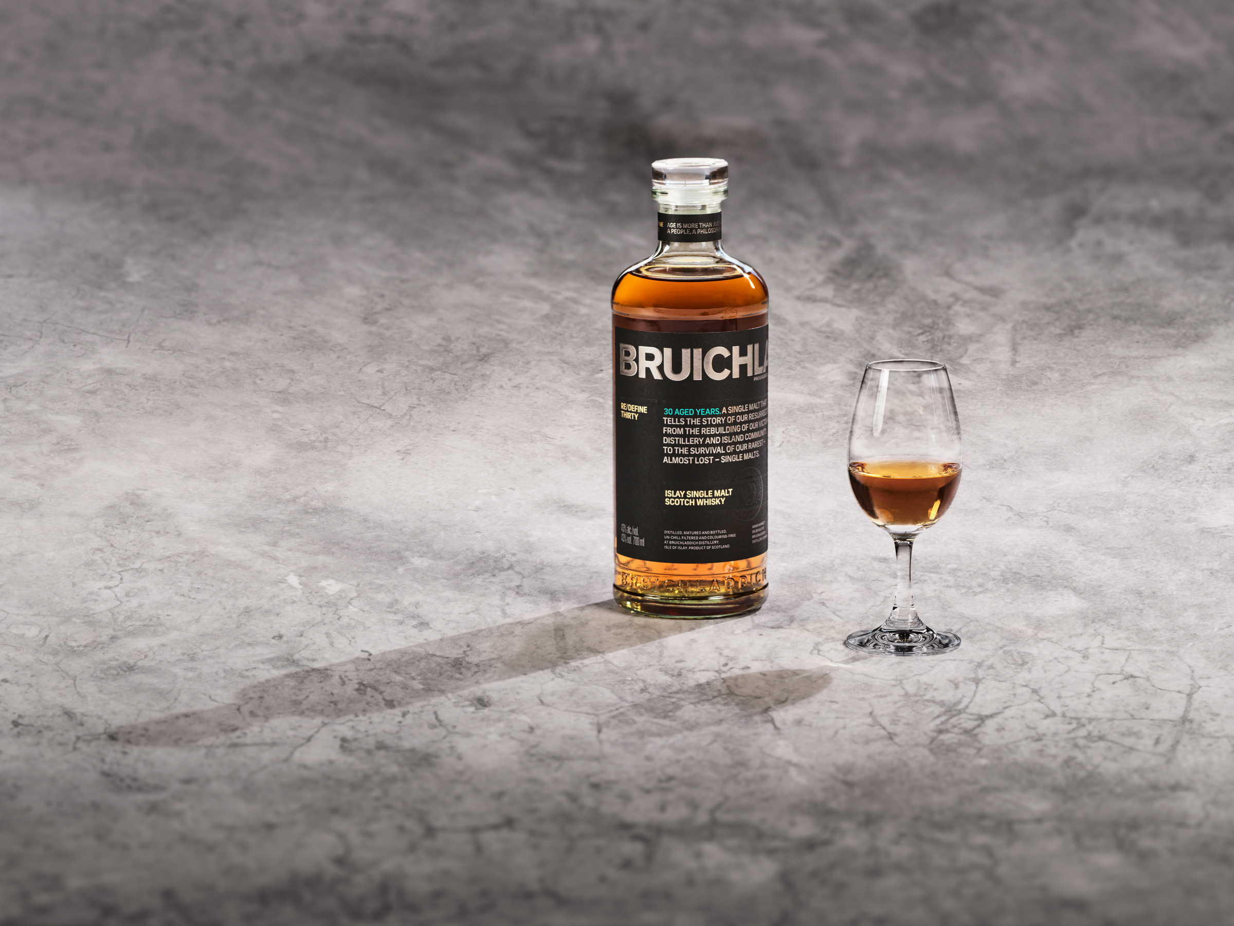 The Bruichladdich Thirty在精心挑選、極為珍貴的舊波本威士忌桶中陳釀。作為一款精緻細膩而產量有限的單一純麥蘇格蘭威士忌,The Bruichladdich Thirty裝瓶時的酒精濃度為43.2%,帶出烤橡木、蜂蜜及雲呢拿的柔和香甜。細緻而層次豐富的黑朱古力味為優雅花香味錦上添花,更展現海風點綴的格調,向完全在艾雷島上陳釀的威士忌作致敬。