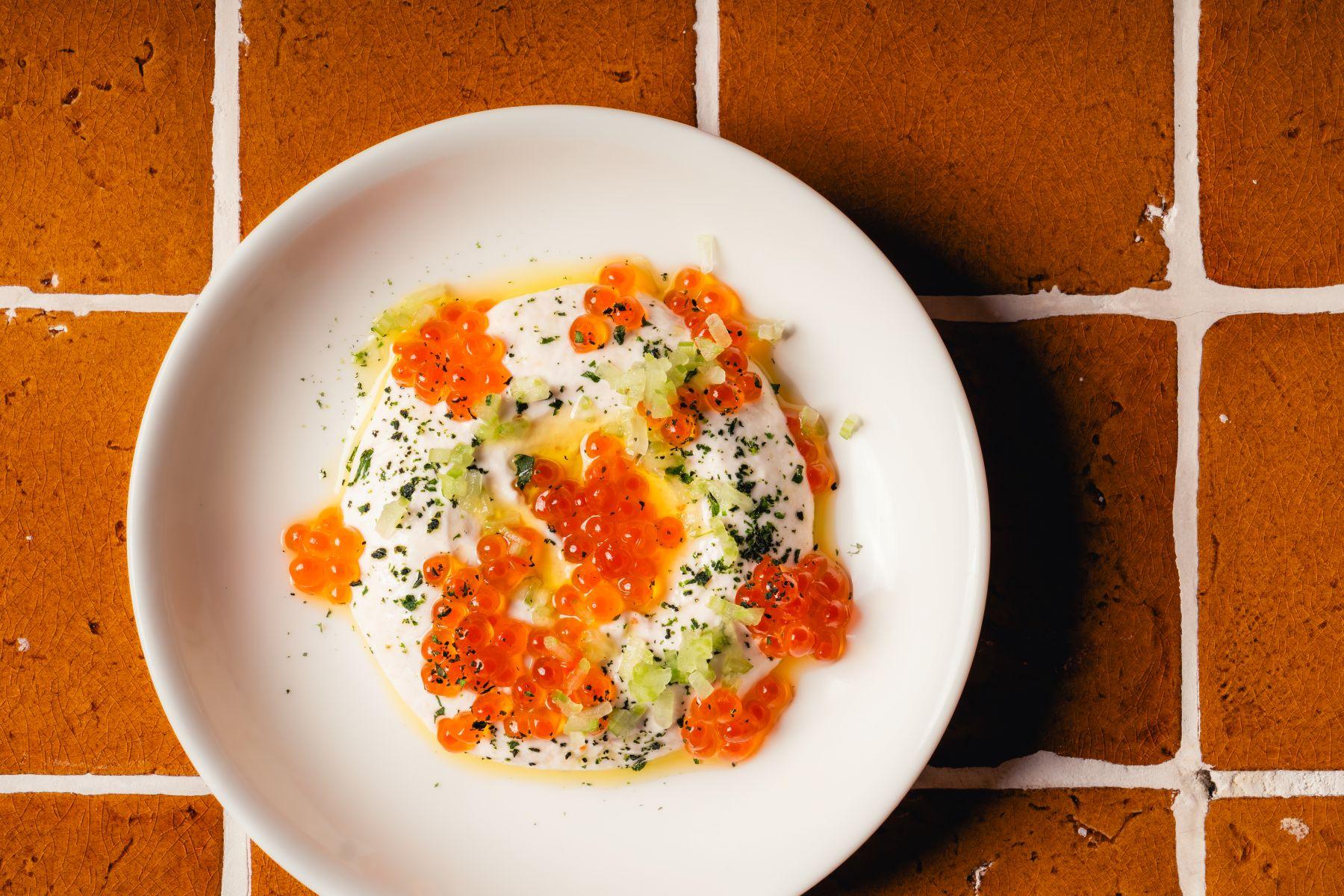 餐廳Carmela店名源自希伯來文,意指「花園」或「葡萄園」,旨在以海洋與田園風味為首,地中海料理平實不花巧,用料簡單,著重食材新鮮本味,純粹以橄欖油、小麥與香草入饌,帶出陽光田園氣息。每道菜式皆各具特色,晚餐先以蒜香鼠尾草酸種普羅旺斯麵包帶來飄香的溫暖,麵包內滿佈氣孔,柔軟蓬鬆,塗上浸了新鮮香草的特級初榨橄欖油,散發香草的自然芳香。加上三文魚子點綴的鯖魚蓉鹽漬魚子醬,海洋精華濃縮,鹹甜交織刺激胃口。焗意大利乳清芝士溫潤細膩,佐以發酵辣椒、蜂蜜及新鮮奧勒岡,辣意與花香交融,展現出層次豐富的新鮮感。
