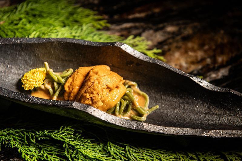 以備長炭火烤製的北海道喜知次,外層焦脆、魚肉嫩滑魚油豐腴。以鮮魚熬製魚湯調配酸辣汁,細膩詮釋新派酸菜魚的韻味 。用景德鎮瓷器盛載的椒麻風乳鴿,經過四十八小時熟成,凝聚深邃肉香。外皮香脆,內裡多汁;青花椒醬的麻感點亮味蕾。師傅手工揉製青嵐抹茶麵條,口感勁道,散發茶香甘韻。融合「川味三香」即花椒的麻、辣椒的烈、豆瓣醬的醇,製作辛香擔擔麵醬,與綿滑入口融化的海膽和諧相融。每道出品精緻,配合設計高雅精美的食具器皿,整場體驗充滿視覺與味覺的刺激,吸引客人不停打卡。
