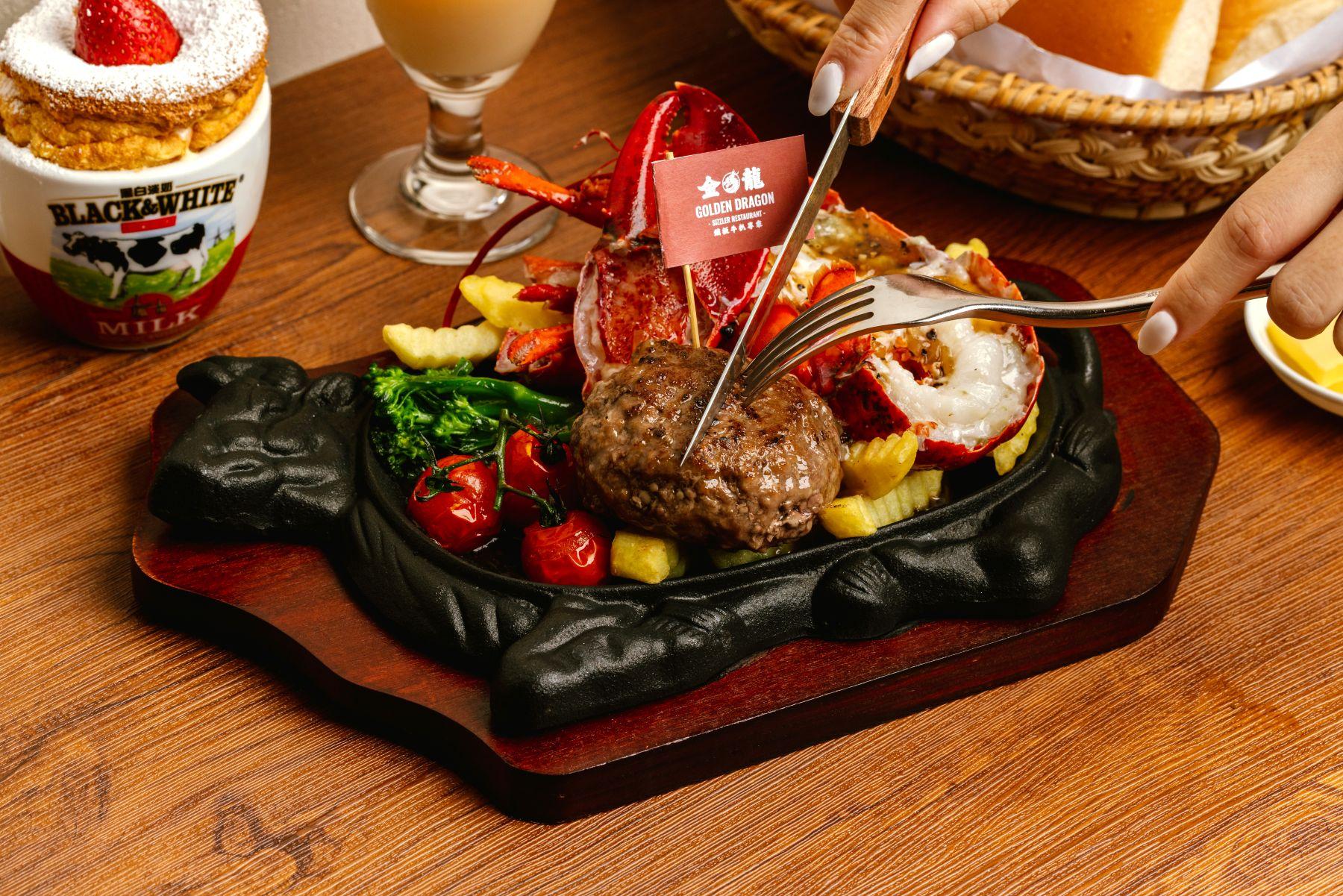 東涌東薈城新開業的金龍,向七十至九十年代港式扒房黃金歲月致敬,由裝潢設計、背景音樂到餐牌,都流露復古情懷。來到必食鐵板爆汁挽肉搭波士頓龍蝦,新張優惠更大送滋味小食!
