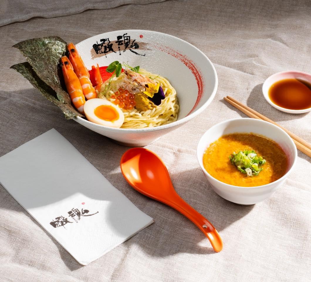 將軍澳新都城中心有一間日本拉麵店新開業,一改傳統,用蝦湯做湯底,鮮味無窮。店舖不時都有期間限量的特式拉麵,心水推介蝦X蟹濃汁沾麵,沾麵配料有蟹肉、海蝦、三文魚子、秘製蟹膏,特濃蝦、蟹沾麵汁使用蝦湯做基調再混合蟹肉蟹膏,再撈上充滿小麥粒拉麵。麵條非常掛汁,另再配上鎮江醋帶出蟹味多重變化,非常吸引!