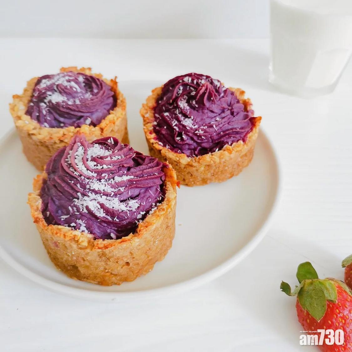 雖然香港的紫薯熱潮已過,但是紫薯仍是一樣不錯的減肥食品,用來製作紫薯燕麥撻既可減脂,亦可增加飽足感。一般的撻皮都是利用大量牛油製作,而燕麥撻則選用香蕉和燕麥取代,既健康又低脂,而且亦不失撻皮應有的香脆口感,有時間的話不妨製作吧!