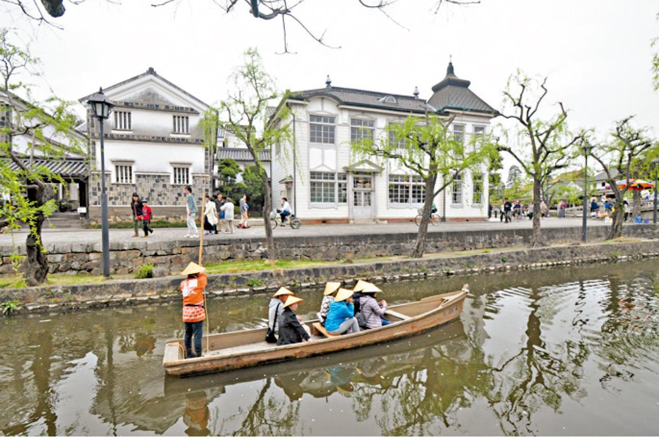 除了後樂園,不可錯過的還有倉敷美觀區,岸邊都是灰磚白牆的建築。江戶時代初期,幕府在此區設置直轄領地,以河道成為物資集散地,那些建築就是當年的倉庫。今天船伕帶遊客泛舟遊覽,不少新人穿上傳統褂式禮服在此接受遊人祝福,垂柳下畫面構圖一片恬靜。