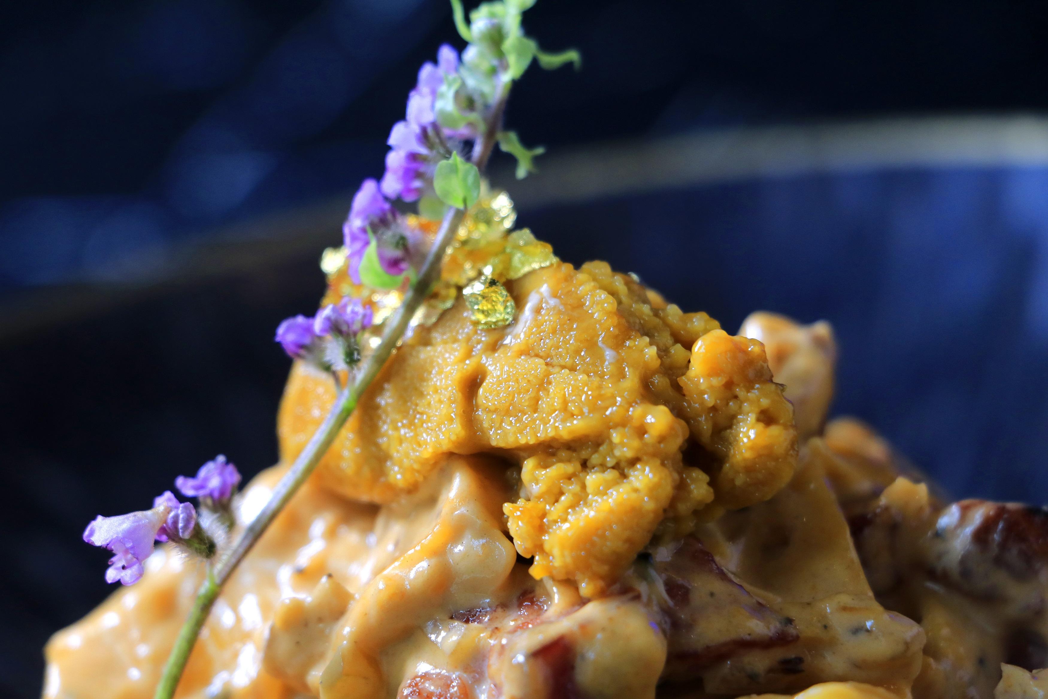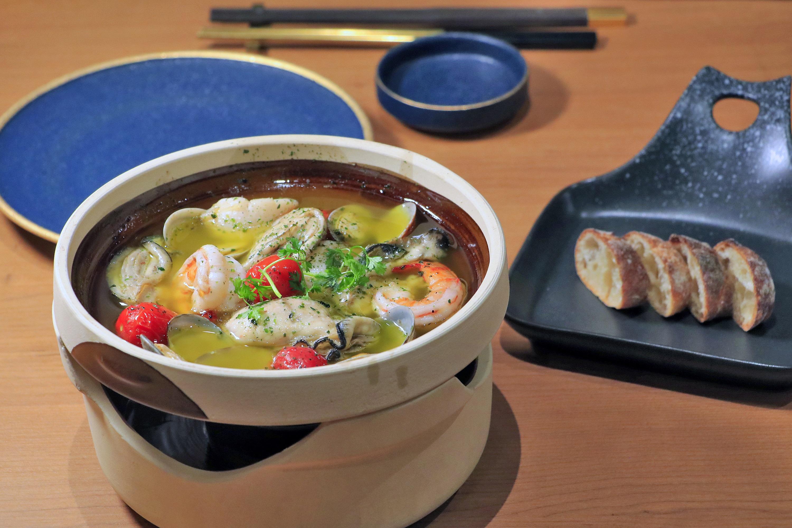 至於食材,店方稱貨運未受疫情影響,堅持每日或隔日從日本進口,例如北海道海膽、喜知次及時令蔬菜。爐端燒之選除了「八味豚足燒」,另推介「鰹魚湯塩煮季節魚」,以日本特製高溫油紙包裹着昆布森蠔、厚岸蜆、金目鯛、日本舞茸菇及昆布等材料,加入日本葡萄白酒、鰹魚高湯、牛油、檸檬、蒜片,由料理長於席前的爐端上高溫燒煮,近距離觀賞大廚的認真態度。
