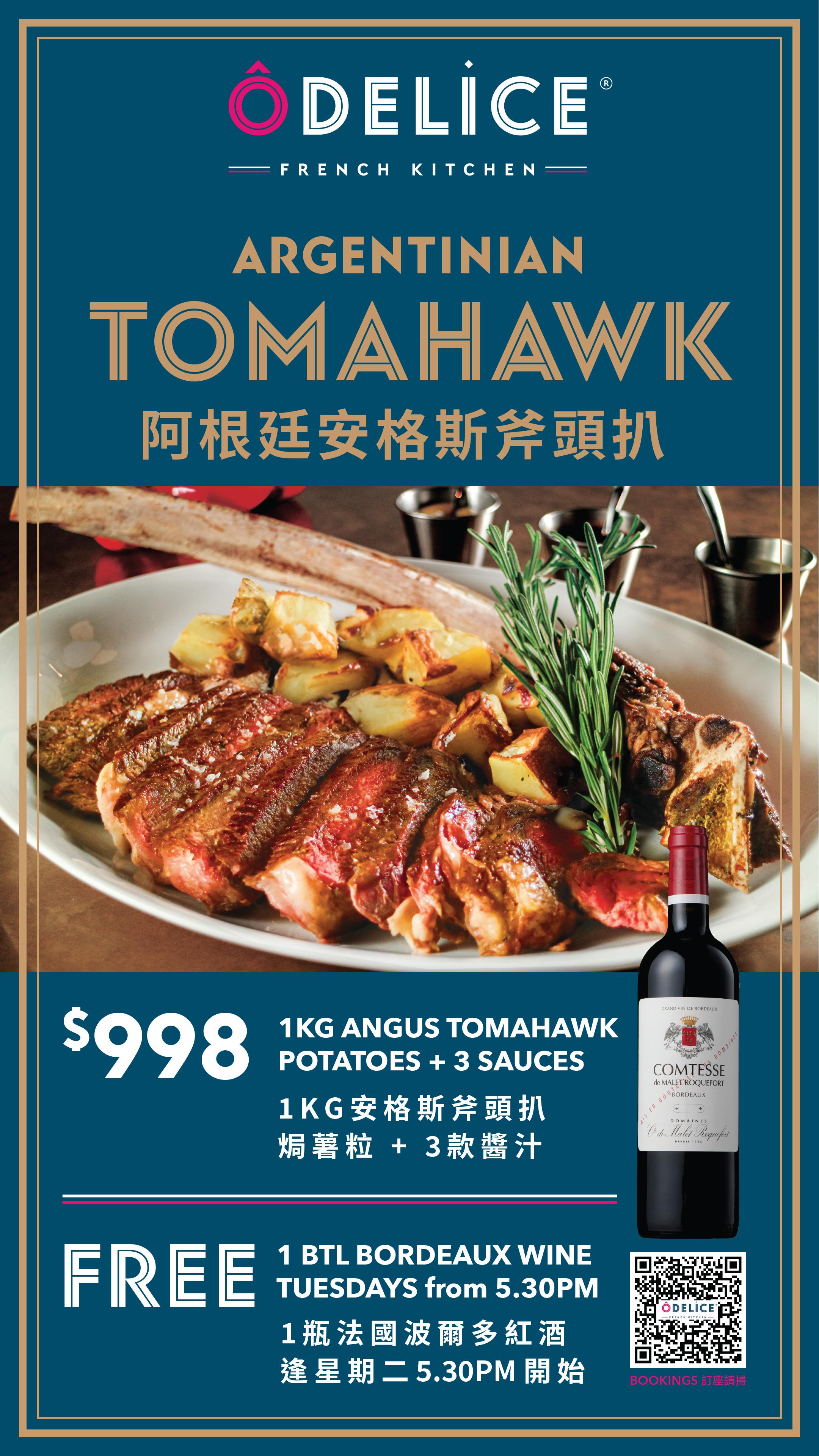 為了讓大家可以用最實惠的價錢品嚐 ÔDELICE 的美食,餐廳會在指定日子推出價廉物美的餐飲 優惠。Bavette 牛排放題逢星期一下午5時半開始供應,食客可以 $268 盡享無限牛肉放題,品嚐澳洲M+牛胸腹扒!更可以優惠價$158 加購半瓶波爾多紅酒,讓醇酒美食令你的星期一充滿力量!