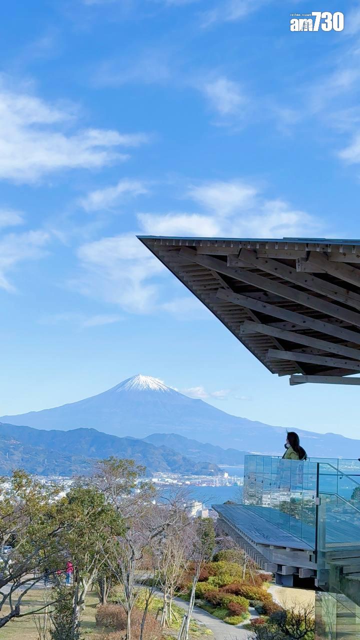 由著名現代建築師隈研吾設計的日本平夢露台,於日本平山頂建造了一座八角形的觀景台,外型參考奈良法隆寺的夢殿,而建築內部設計採用靜岡當地的雪松木,走入建築內即可嗅到柔和温暖的木質香氣。沿著空中走廊,便能360度全方位欣賞靜岡市、駿河灣、伊豆半島及富士山壯麗景色,當日天氣絕佳,雖然富士山頂僅覆蓋薄雪,但有緣欣賞富士山全景依然非常難得。