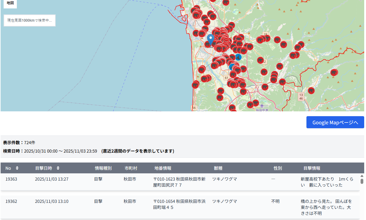 宮城縣: 令和7年度クマ目撃等情報マップ
