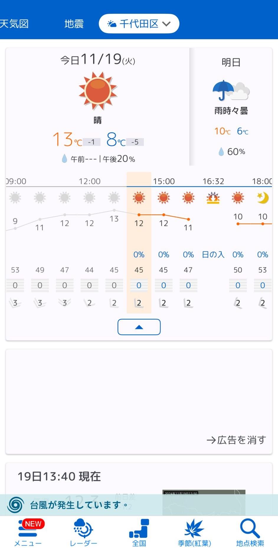 「Tenki.jp」是日本氣象協會所開發的手機APP,提供日本各地的即時天氣及天氣預告。此外亦有提供即日的紅葉情報,大家出發之前可以透過手機APP查閱,確保可以看到紅葉。