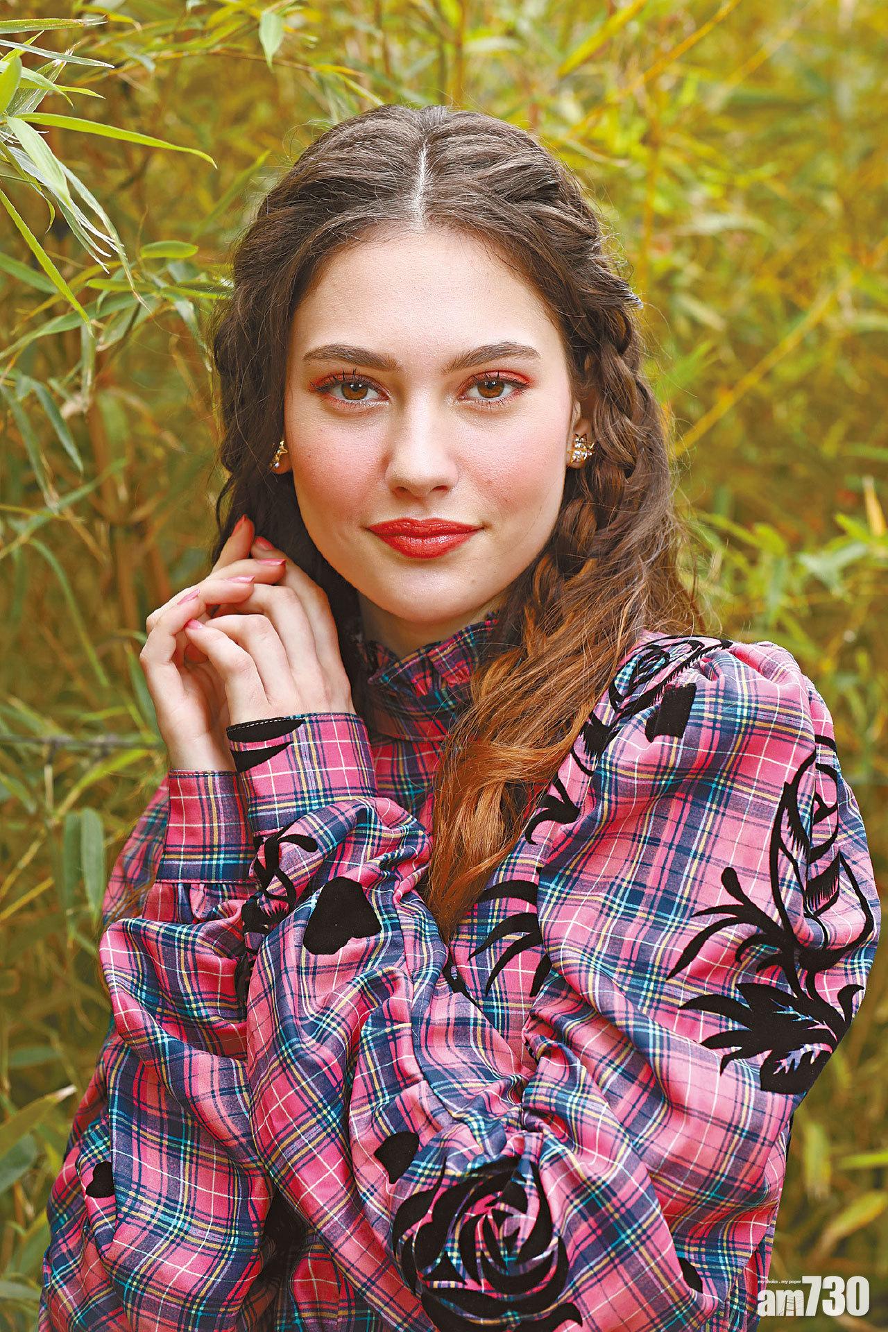 【清新花園的浪漫】 粉紅x黑色格子心心圖案連身裙 $2,100 (d); 星星閃石拼紅色波波耳環 $499 (d)