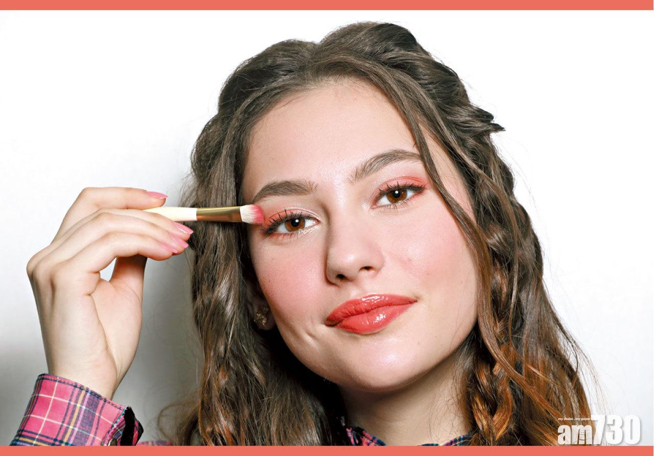 Step 2 在靠近眼線位置掃上綠藍色眼影,可作眼線兼令整體眼妝效果更突出;
